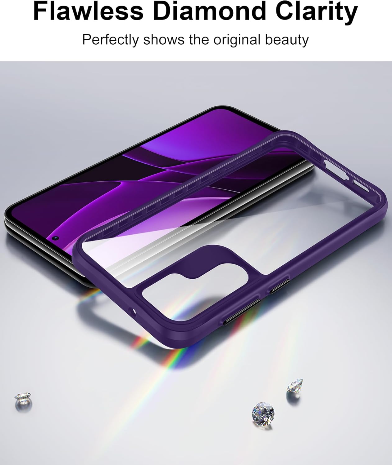 HOOMIL Кристално прозрачен калъф за Samsung Galaxy S23 +/S23 Plus, антижълт прозрачен калъф за мобилен телефон, удароустойчив защитен калъф - прозрачно лилаво