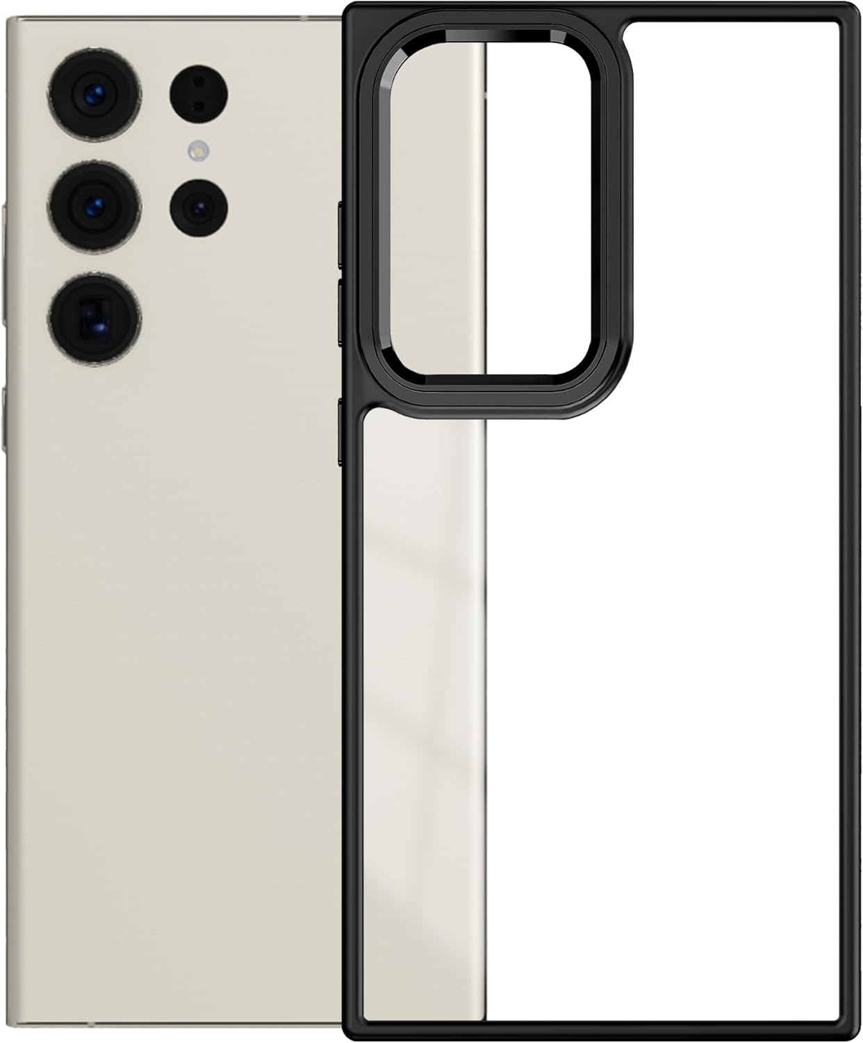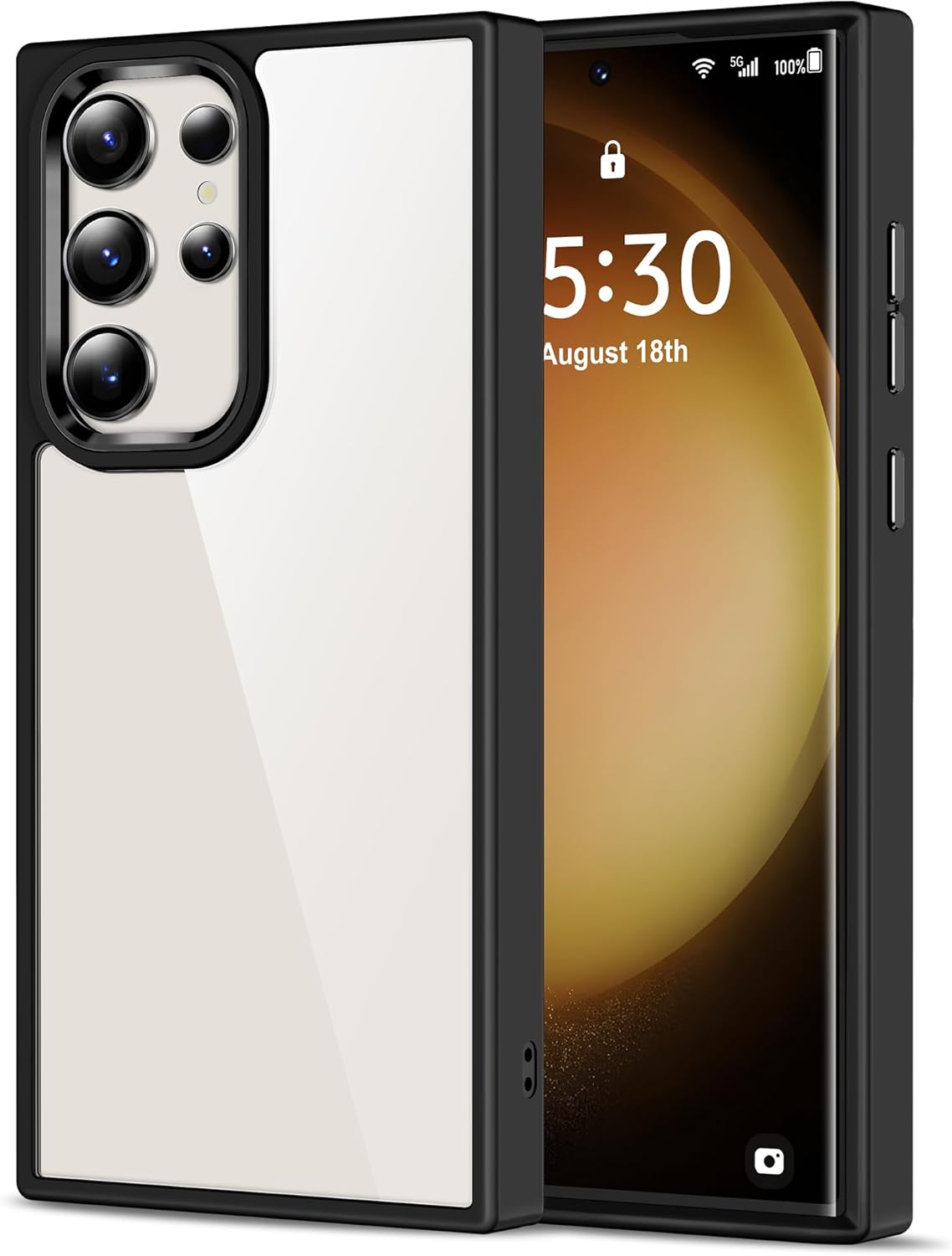 HOOMIL Кристално прозрачен калъф за Samsung Galaxy S23 Ultra, антижълт прозрачен калъф за мобилен телефон, удароустойчив защитен калъф - черен