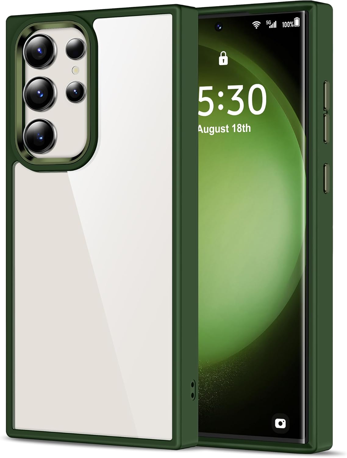 HOOMIL Кристално прозрачен калъф за Samsung Galaxy S23 Ultra, антижълт прозрачен калъф за мобилен телефон, удароустойчив защитен калъф - зелен