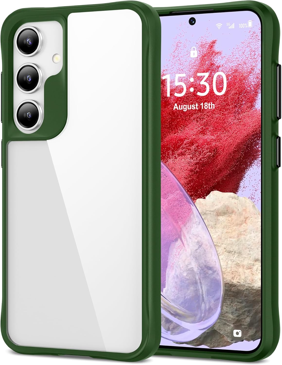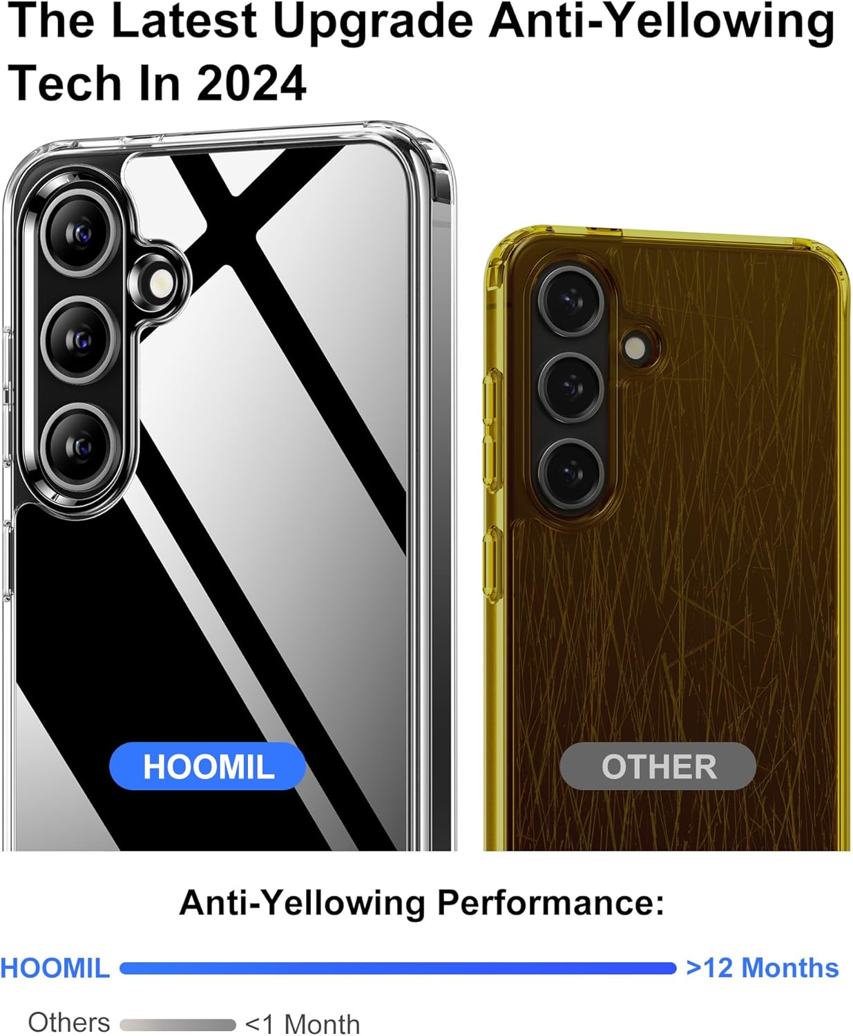 HOOMIL Кристално прозрачен калъф за Samsung Galaxy S24, никога пожълтяващ прозрачен - чисто зелен