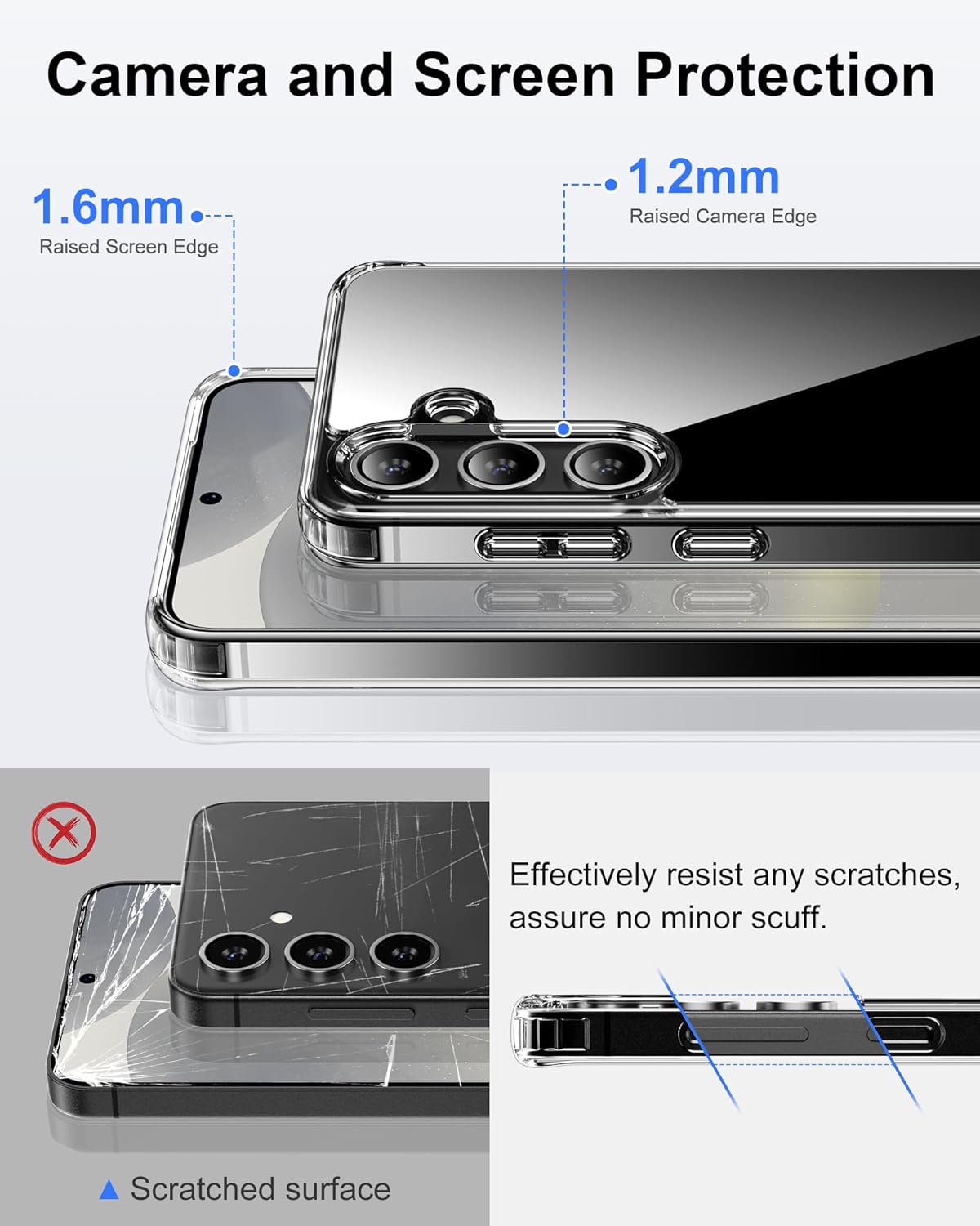 • Стандартна военна защита: уникален удароустойчив дизайн; 4-те ъгъла ефективно абсорбират ударите, а повдигнатите ръбове напълно предпазват екрана и камерата от падане върху плоски повърхности.