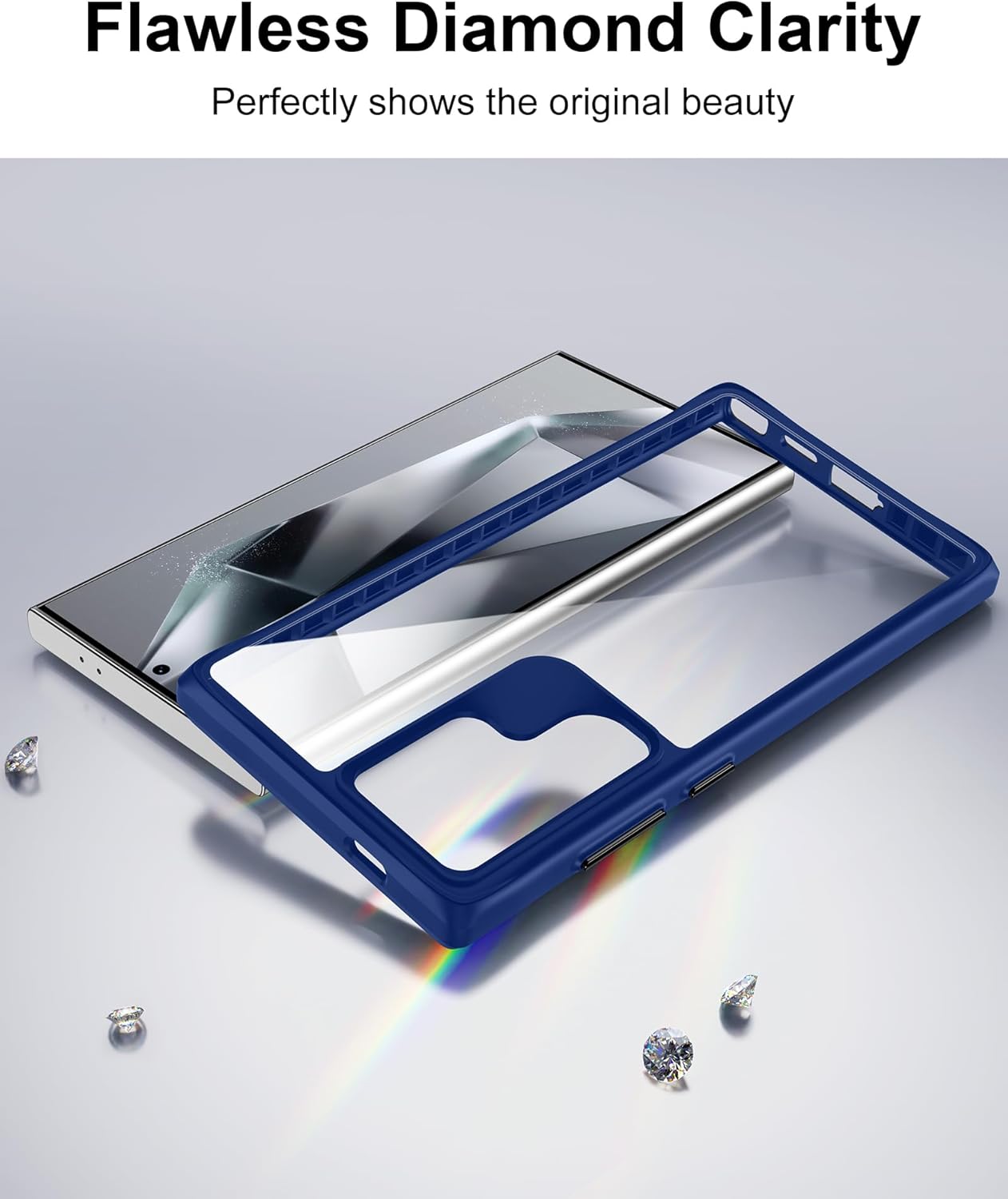 HOOMIL Кристално прозрачен калъф за Samsung Galaxy S24 Ultra, никога пожълтяващ прозрачен - прозрачен син