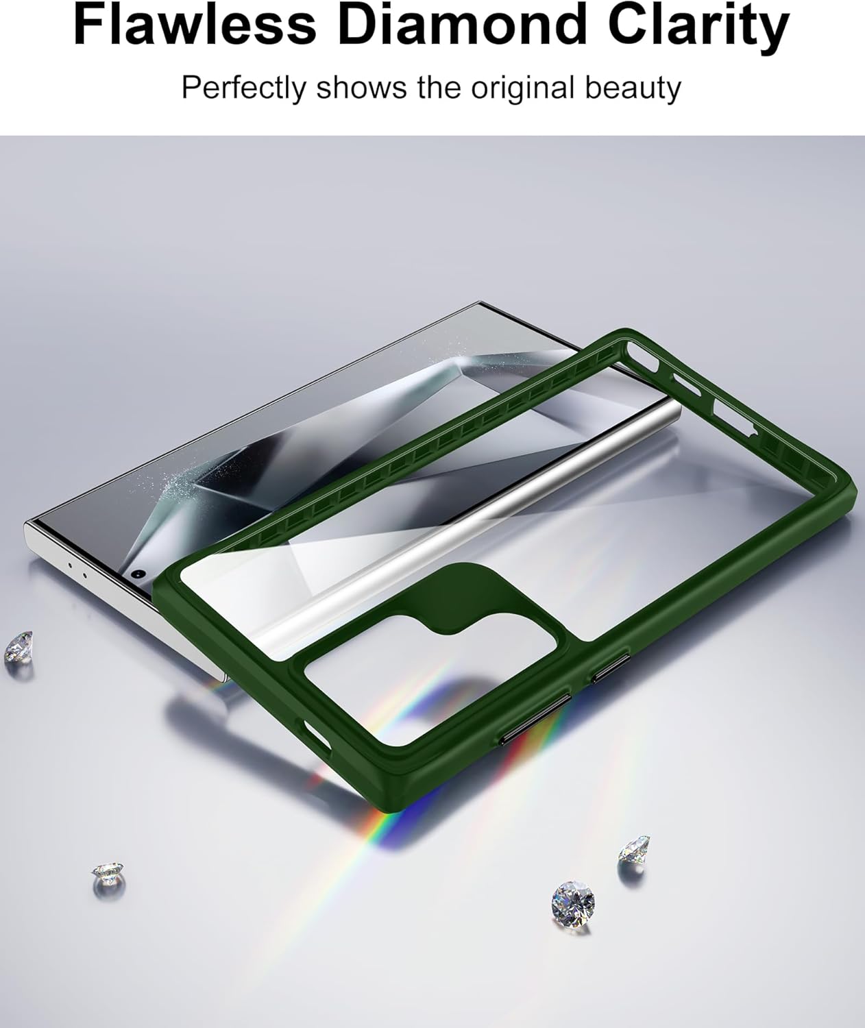 HOOMIL Кристално прозрачен калъф за Samsung Galaxy S24 Ultra, никога пожълтяващ прозрачен - прозрачен зелен