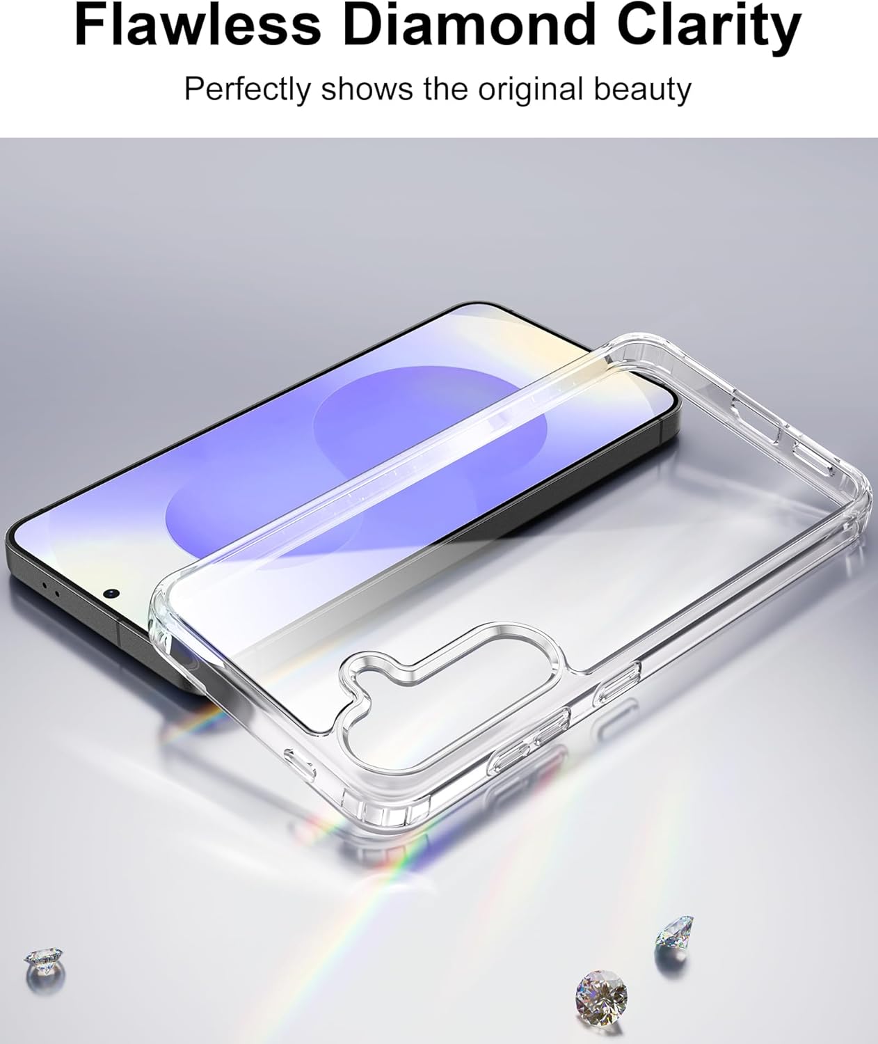 HOOMIL Кристално прозрачен калъф за Samsung Galaxy S25, антижълт прозрачен калъф за мобилен телефон, удароустойчив защитен калъф - прозрачен