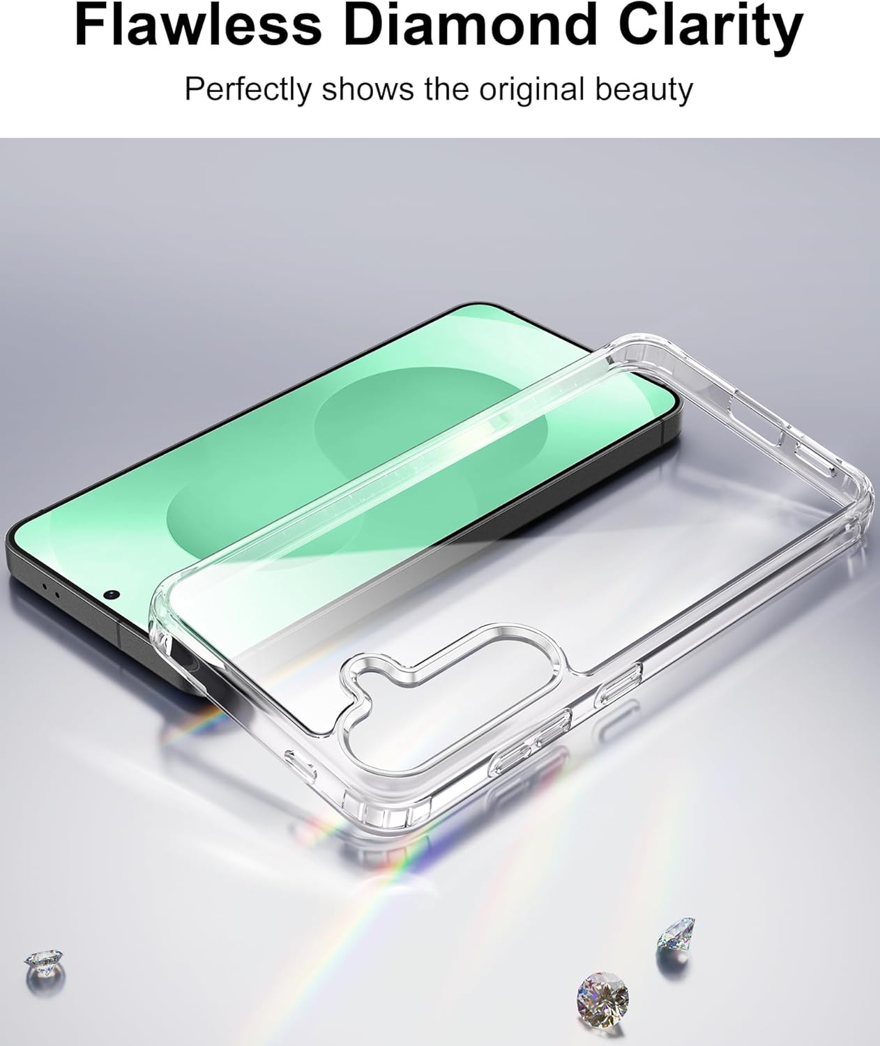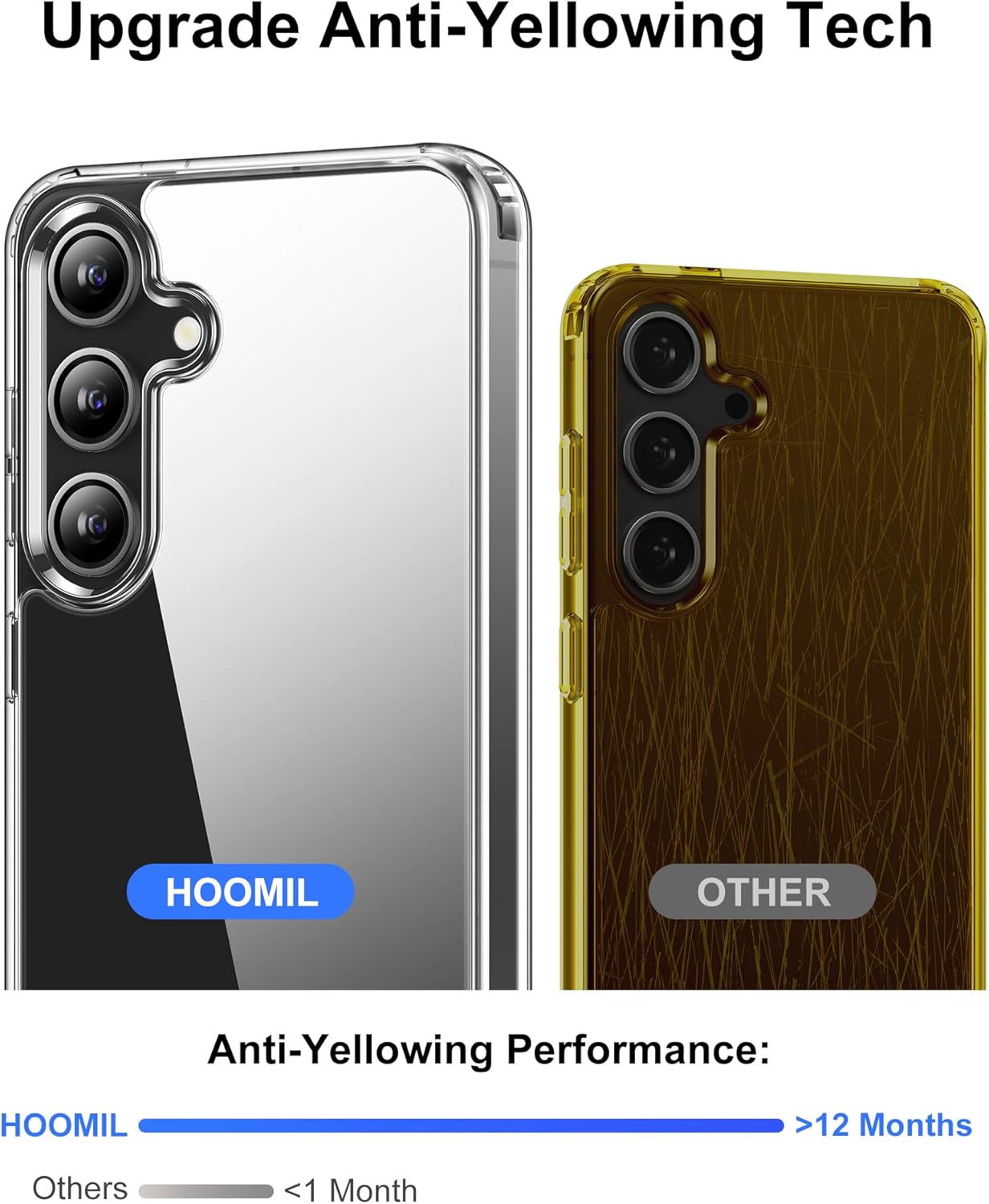 HOOMIL Кристално прозрачен калъф за Samsung Galaxy S25+ Plus, антижълт прозрачен калъф за мобилен телефон, удароустойчив защитен калъф - прозрачен