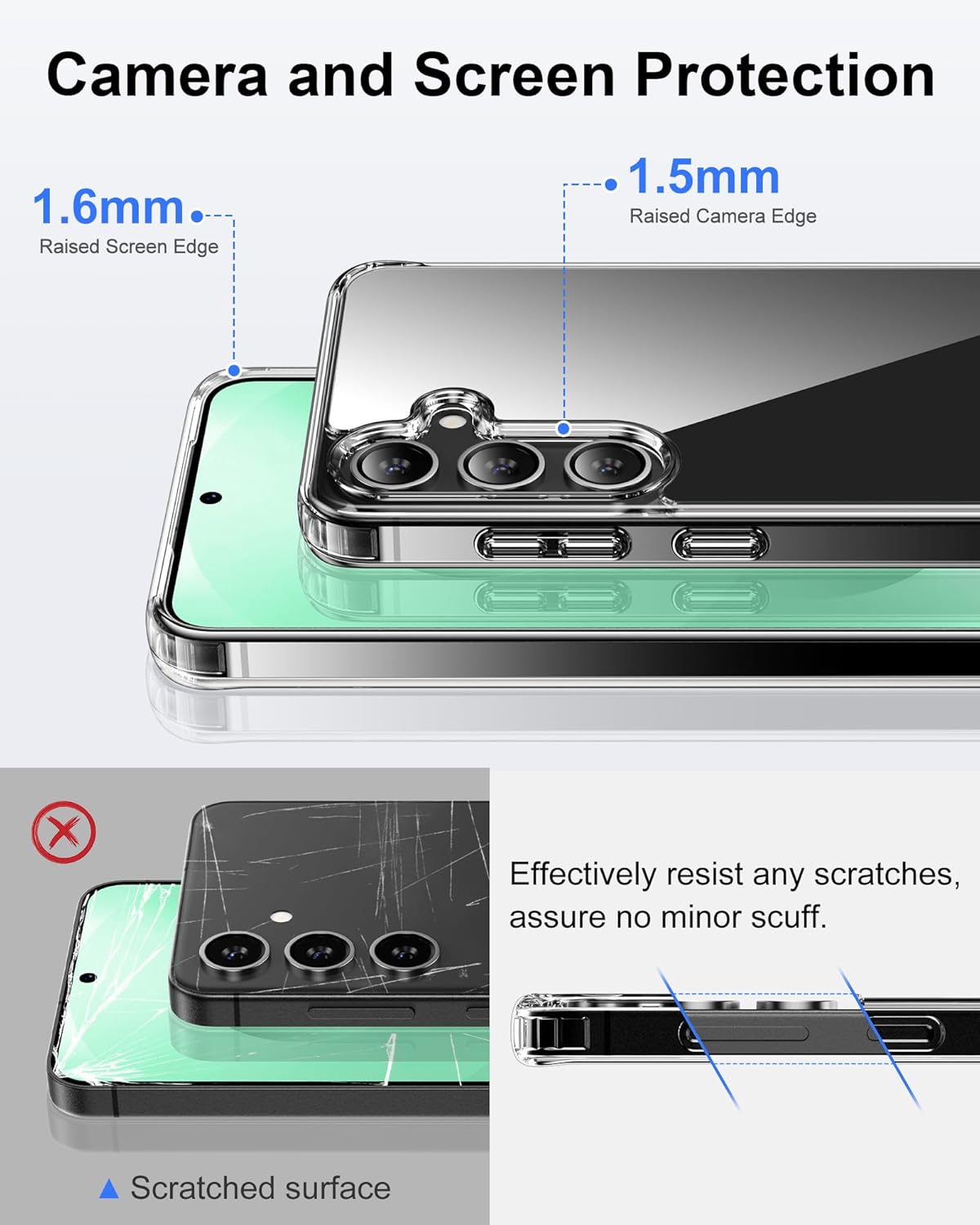 • Стандартна военна защита: уникален удароустойчив дизайн; 4-те ъгъла ефективно абсорбират ударите, а повдигнатите ръбове напълно предпазват екрана и камерата от падане върху плоски повърхности.