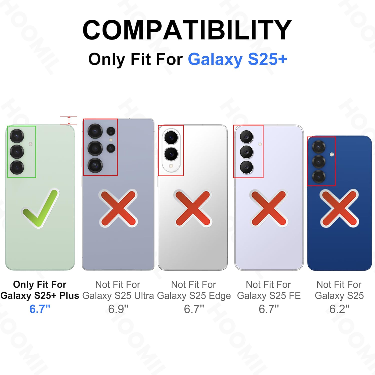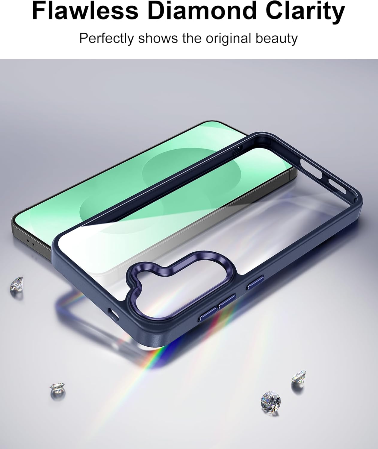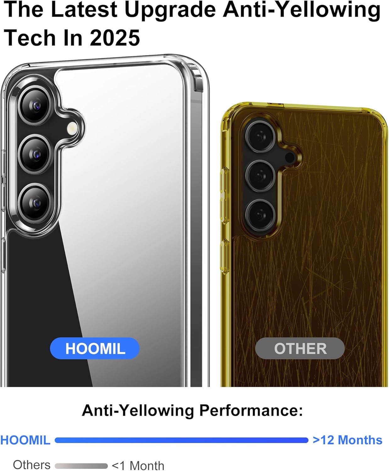 HOOMIL Кристално прозрачен калъф за Samsung Galaxy S25+ Plus, антижълт прозрачен калъф за мобилен телефон, удароустойчив защитен калъф - син