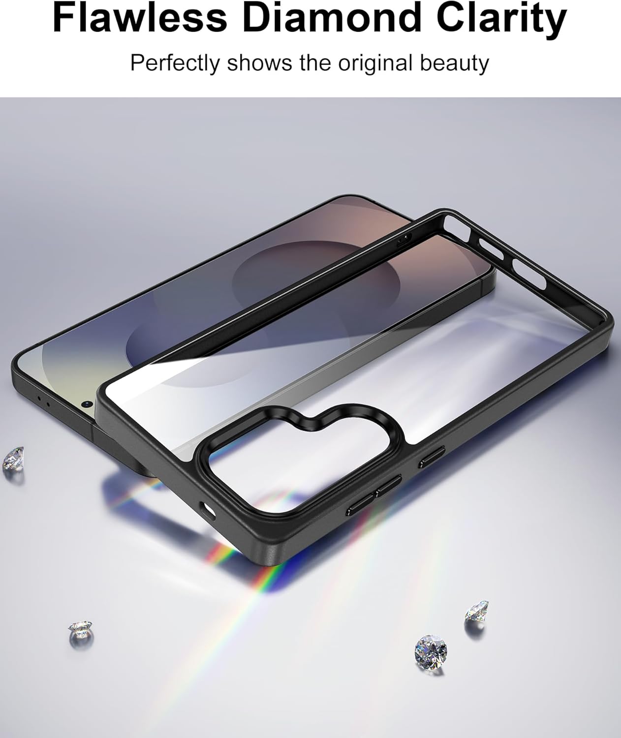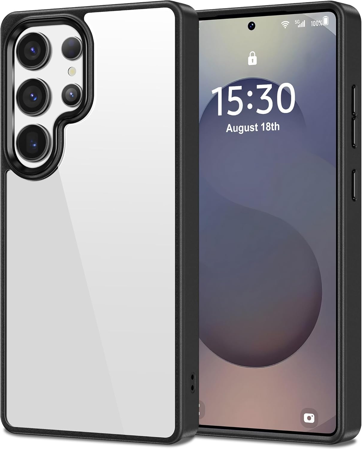 HOOMIL Кристално прозрачен калъф за Samsung Galaxy S25 Ultra, антижълт прозрачен калъф за мобилен телефон, удароустойчив защитен калъф - черен