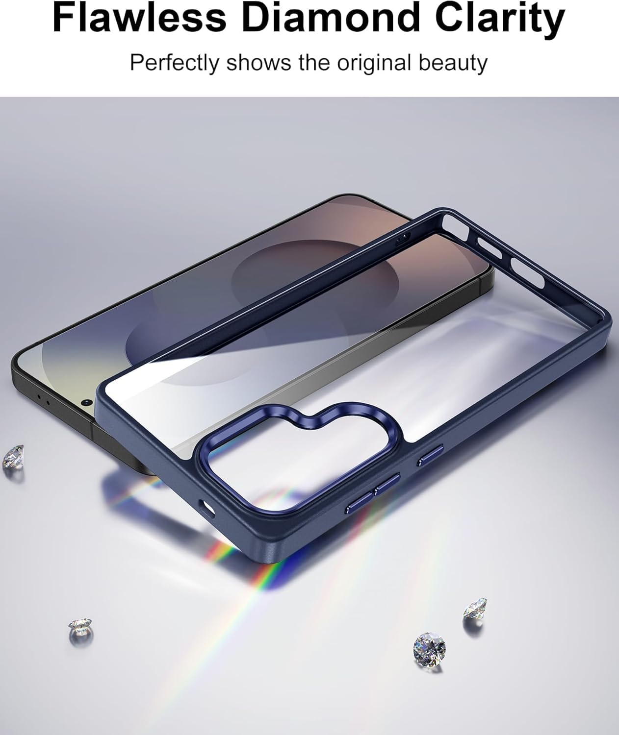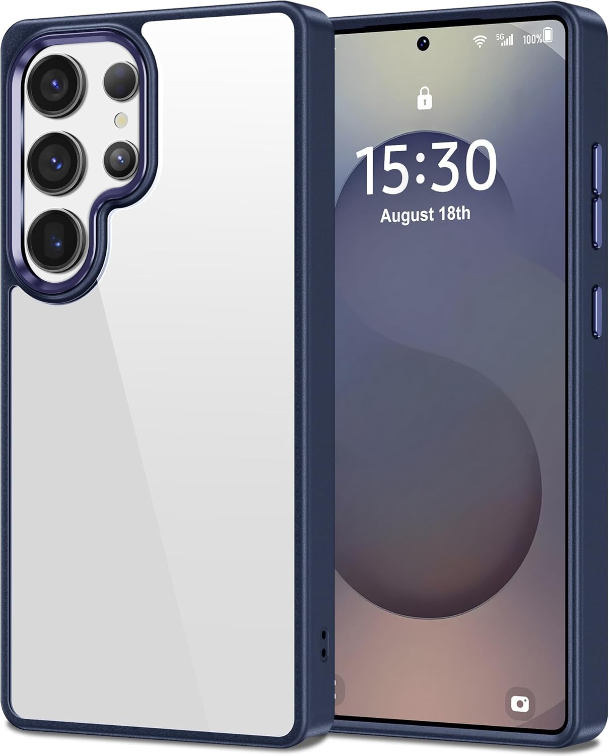 HOOMIL Кристално прозрачен калъф за Samsung Galaxy S25 Ultra, антижълт прозрачен калъф за мобилен телефон, удароустойчив защитен калъф - син