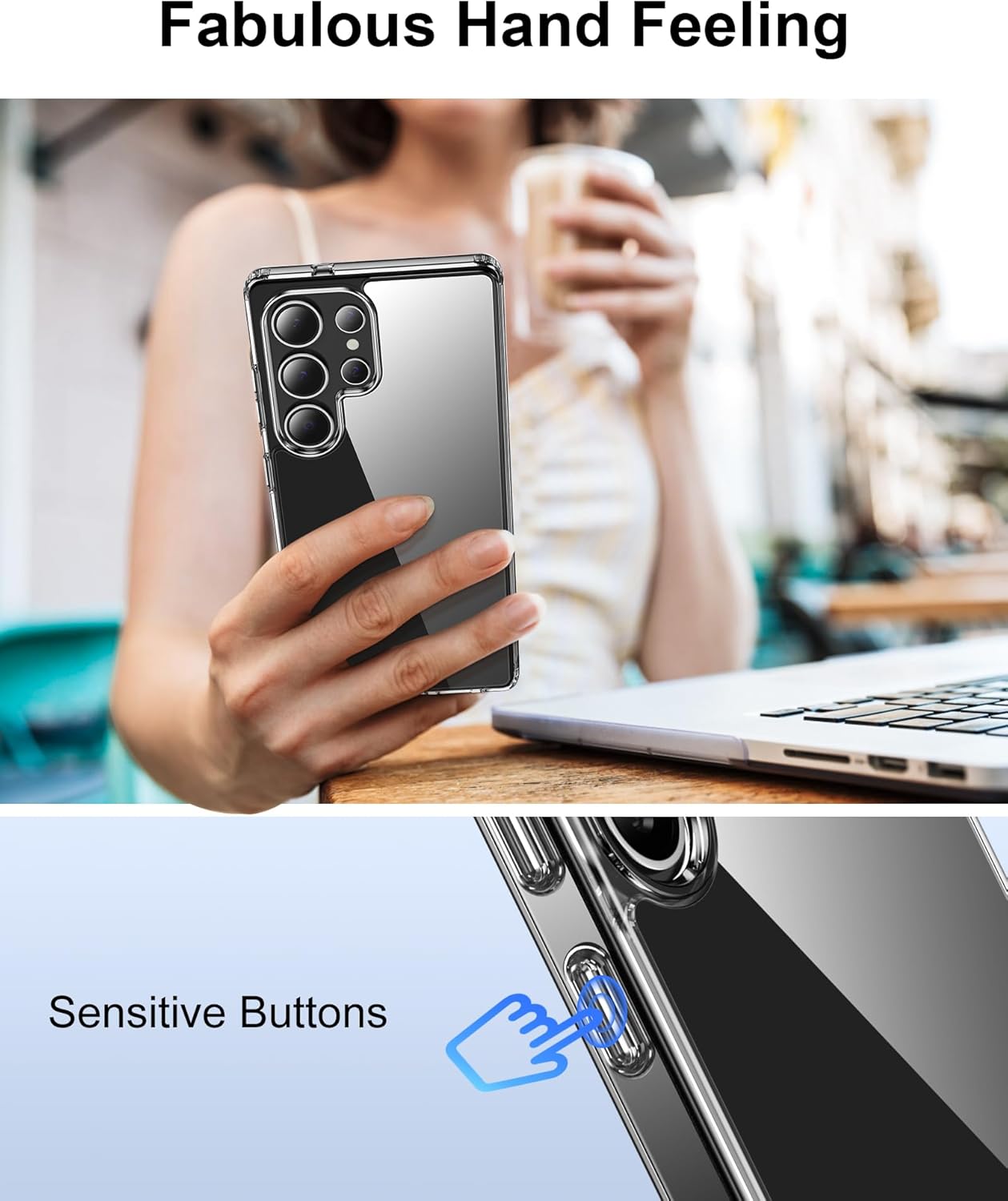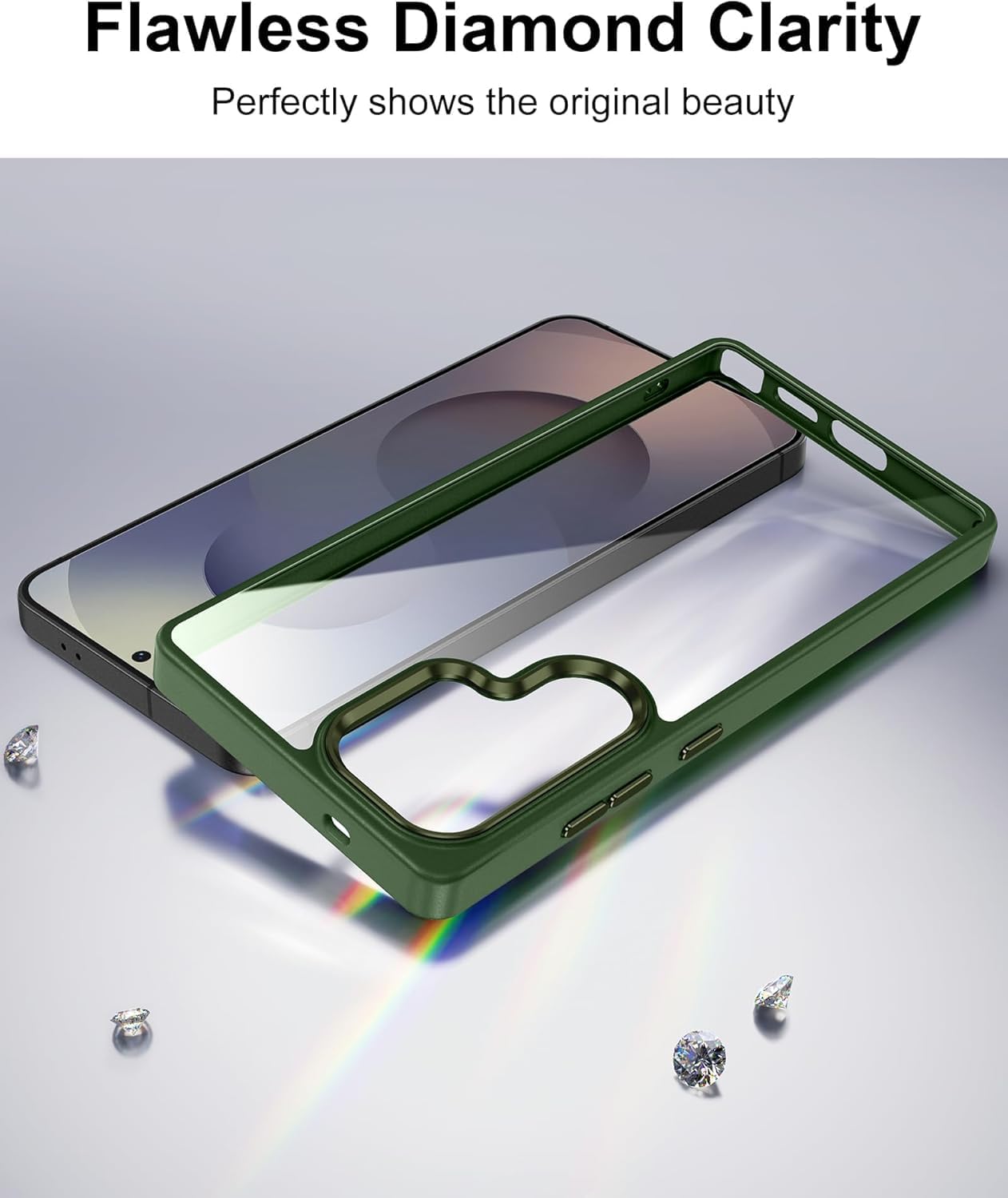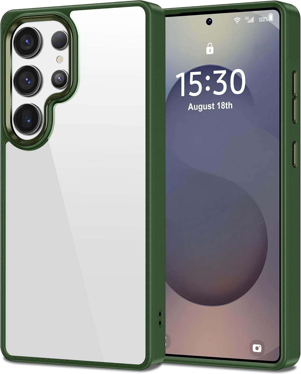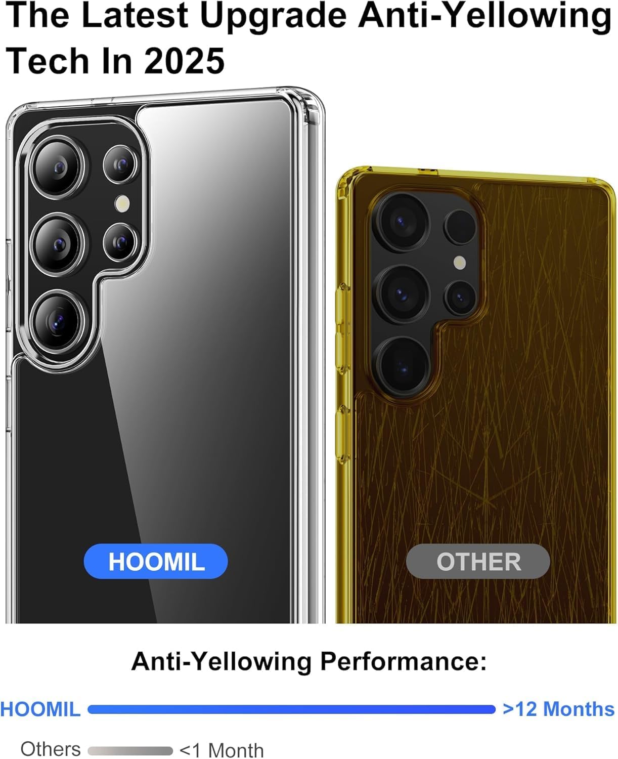 HOOMIL Кристално прозрачен калъф за Samsung Galaxy S25 Ultra, антижълт прозрачен калъф за мобилен телефон, удароустойчив защитен калъф - зелен