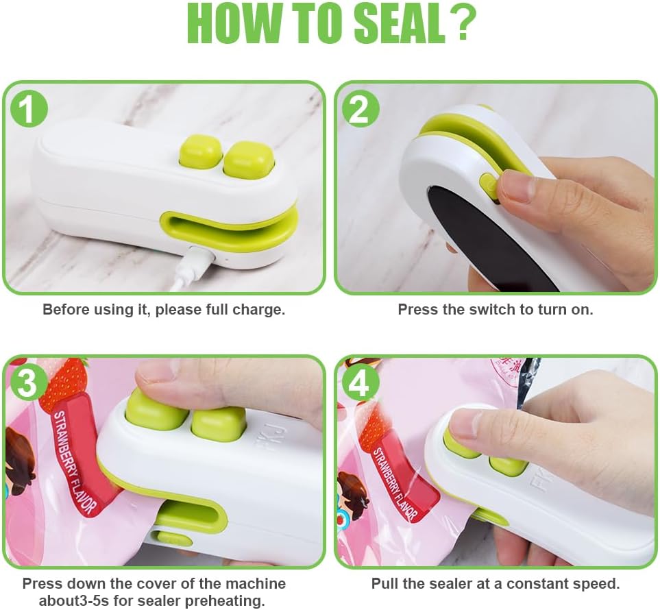 Спецификации: машина за запечатване на закуски + кабел за зареждане