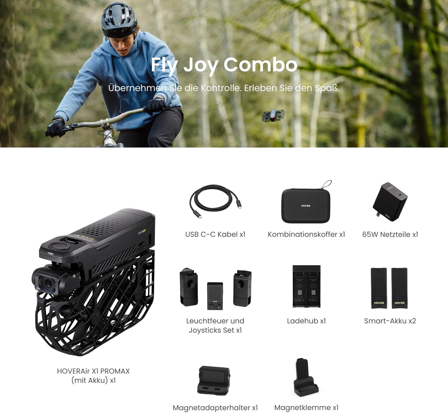 HOVERAir X1 Promax Action Cam 4K, Дрон с камера с над 10 напълно автоматични режима на полет, скорост на проследяване 42 км/ч, летете навсякъде с OmniTerrain (Fly Joy Combo)