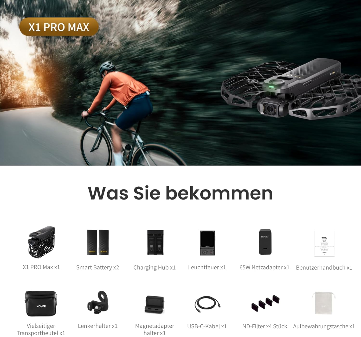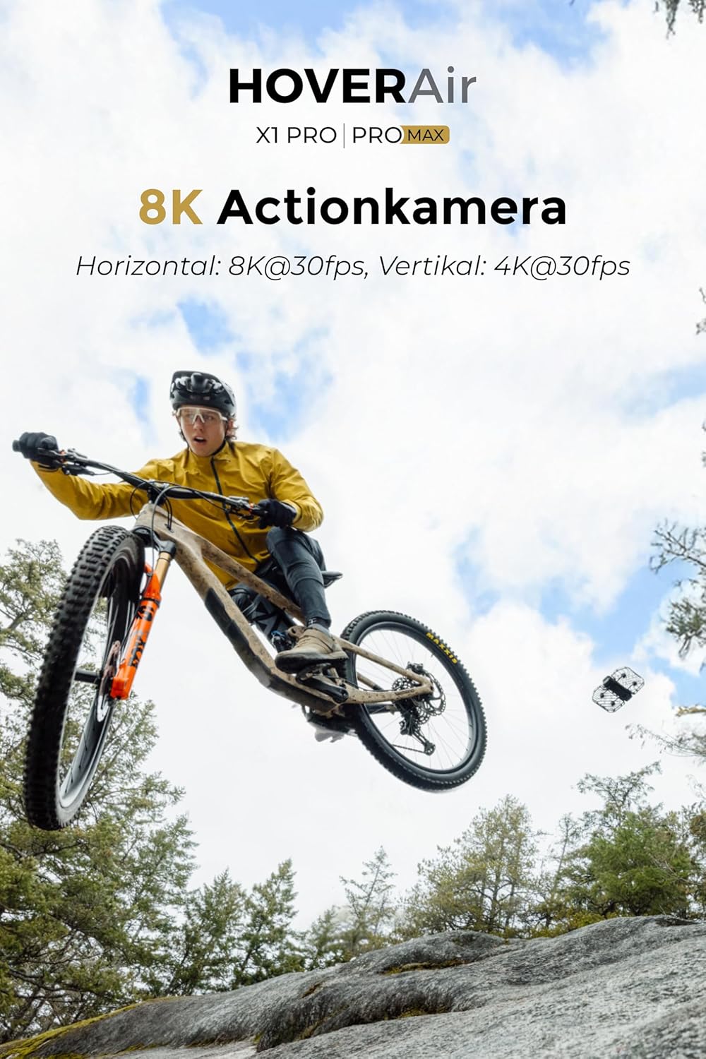 HOVERAir X1 Promax Action Cam 8K, Дрон с камера с над 10 напълно автоматични режима на полет, скорост на проследяване 42 км/ч, летене навсякъде с OmniTerrain, разпознаване на сблъсък отзад (комбинация с колела)