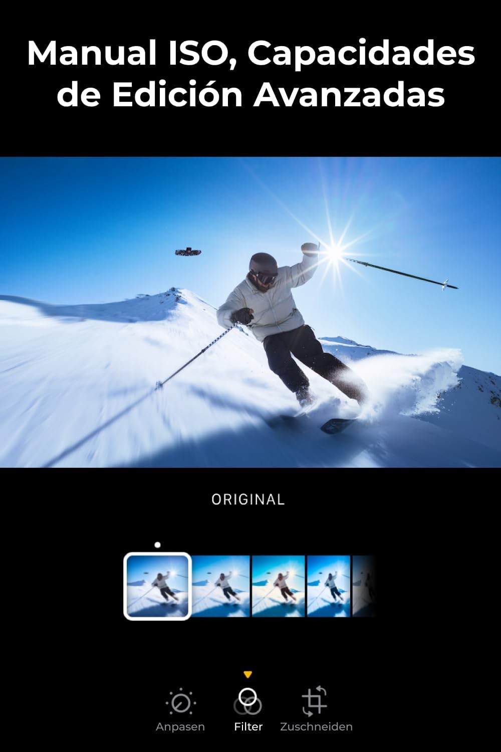 • Летете навсякъде, по всяко време: Иновативният мини дрон OmniTerrain позволява полети над всякакви терени, включително сняг, вода и скали. Просто го вземете със себе си на всяко приключение и заснемете целия пейзаж. С над 10 режима на полет, като например Hover, Zoom Out, Follow и Dolly Track, можете да създавате записи според вашите желания.