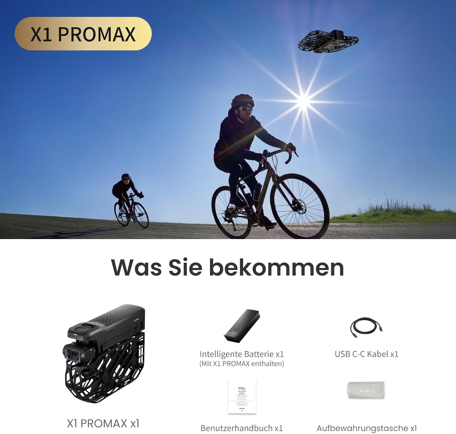 HOVERAir X1 Promax Action Cam 8K, Дрон с камера с над 10 напълно автоматични режима на полет, скорост на проследяване 42 км/ч, летене навсякъде с OmniTerrain, разпознаване на сблъсък отзад (стандартно)