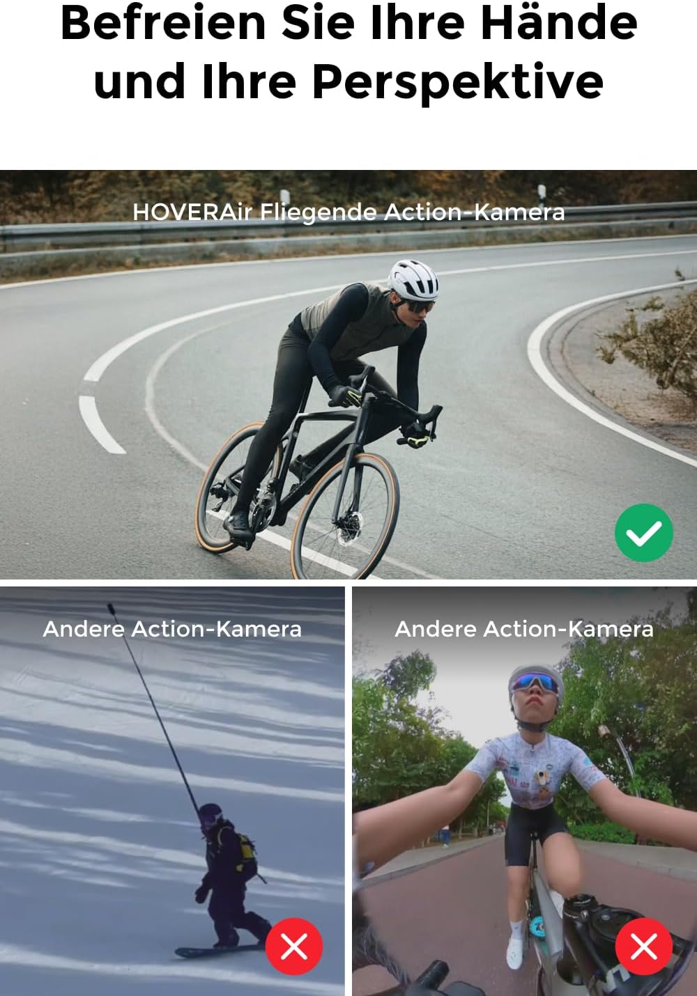• Освободете ръцете си, освободете перспективата си: дронът HOVERAir с камера стартира без усилие от ръката ви само с едно щракване, без нужда от контролер или телефон. Напълно автоматичните режими на полет ви държат във фокуса на действието, докато камерата поема кадрите!