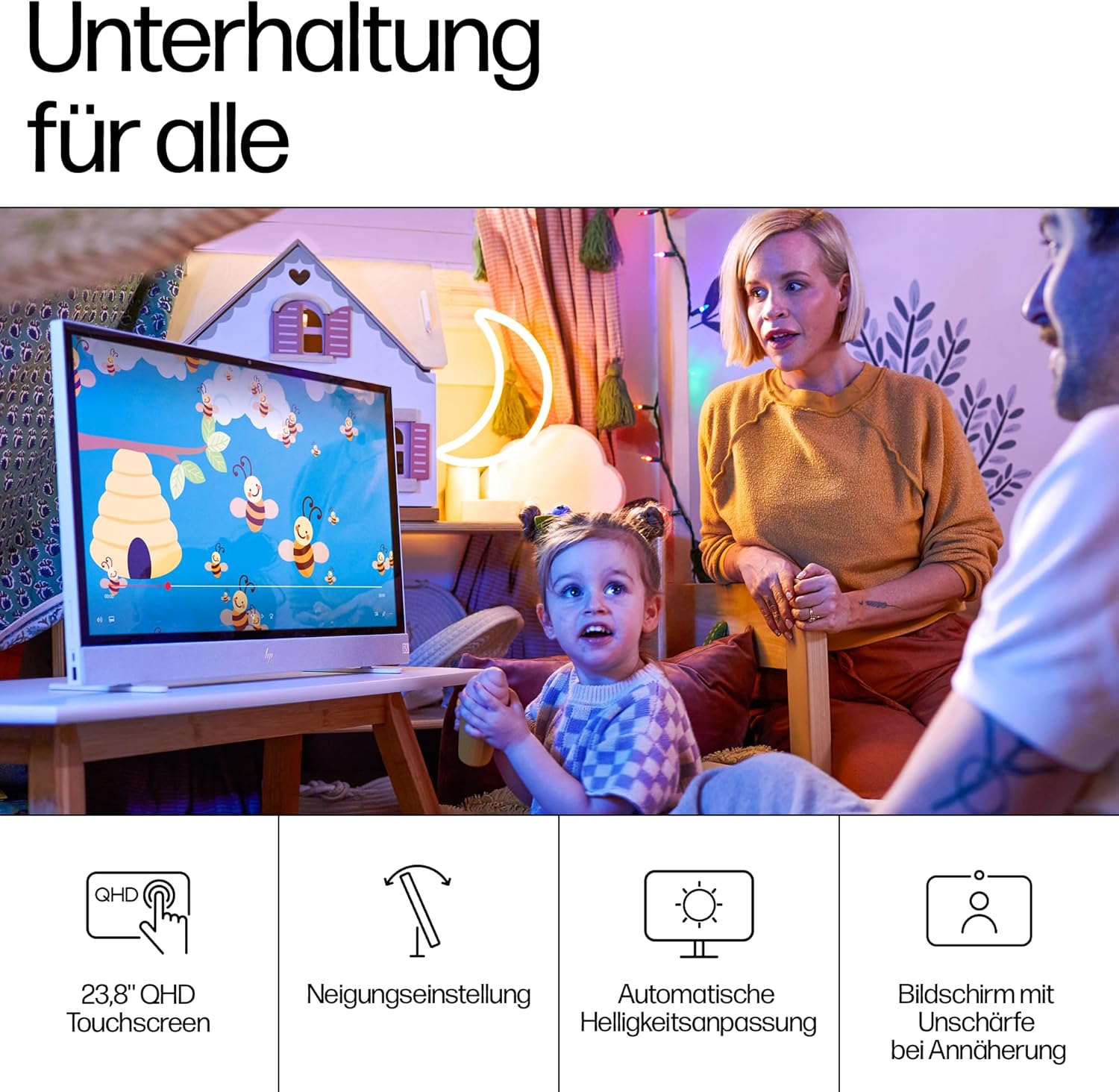 • СЕНЗОРЕН ЕКРАН С ВИСОКА РЕЗОЛЮЦИЯ – Антирефлексен QHD сензорен екран (2560 x 1440) с диагонал 60,5 см (23,8 инча) за брилянтен дисплей
