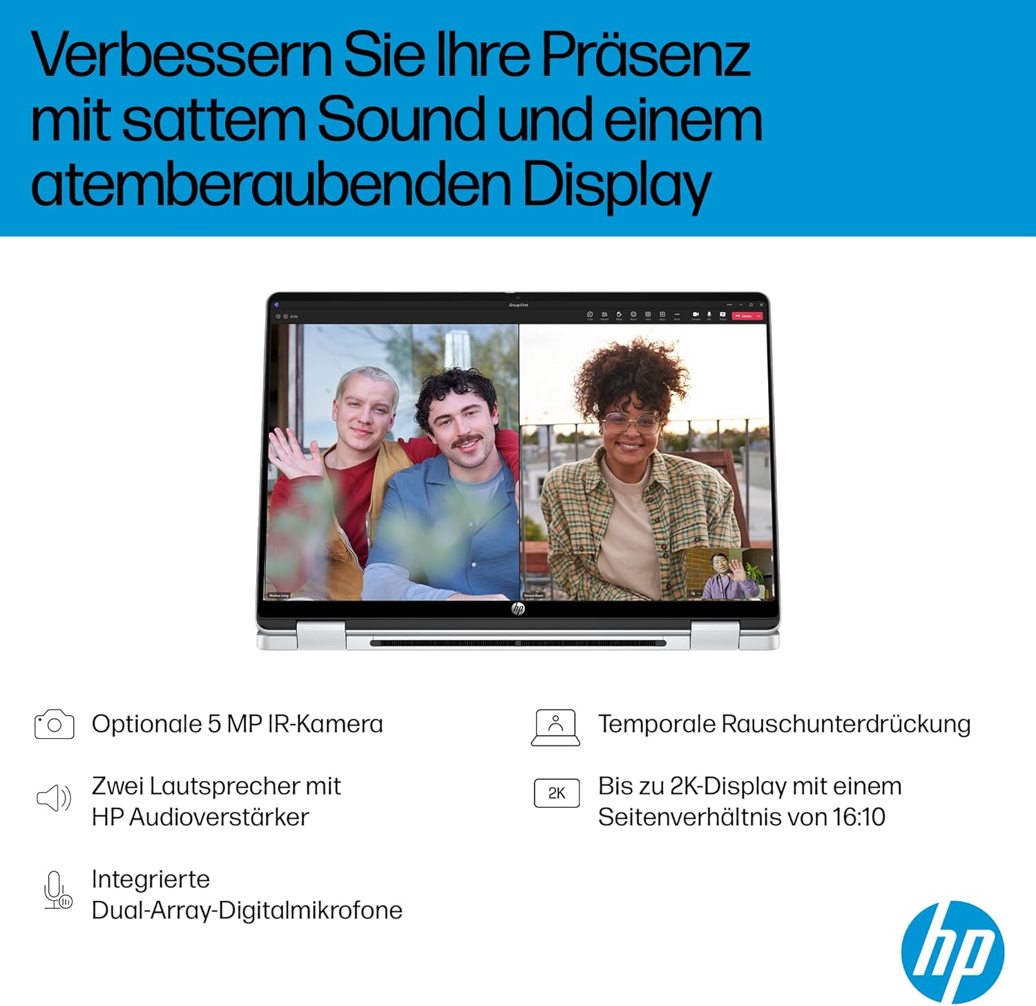 • Насладете се на наситено възпроизвеждане на звук благодарение на първокласни високоговорители и 1080p FHD камера за отлични видео разговори и сътрудничество