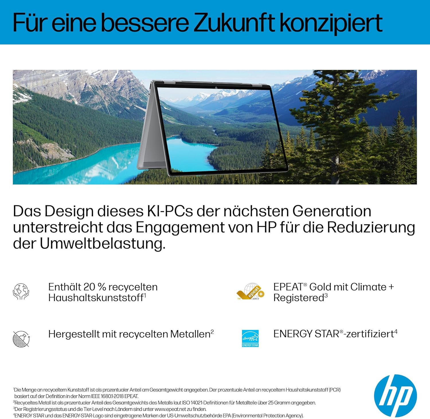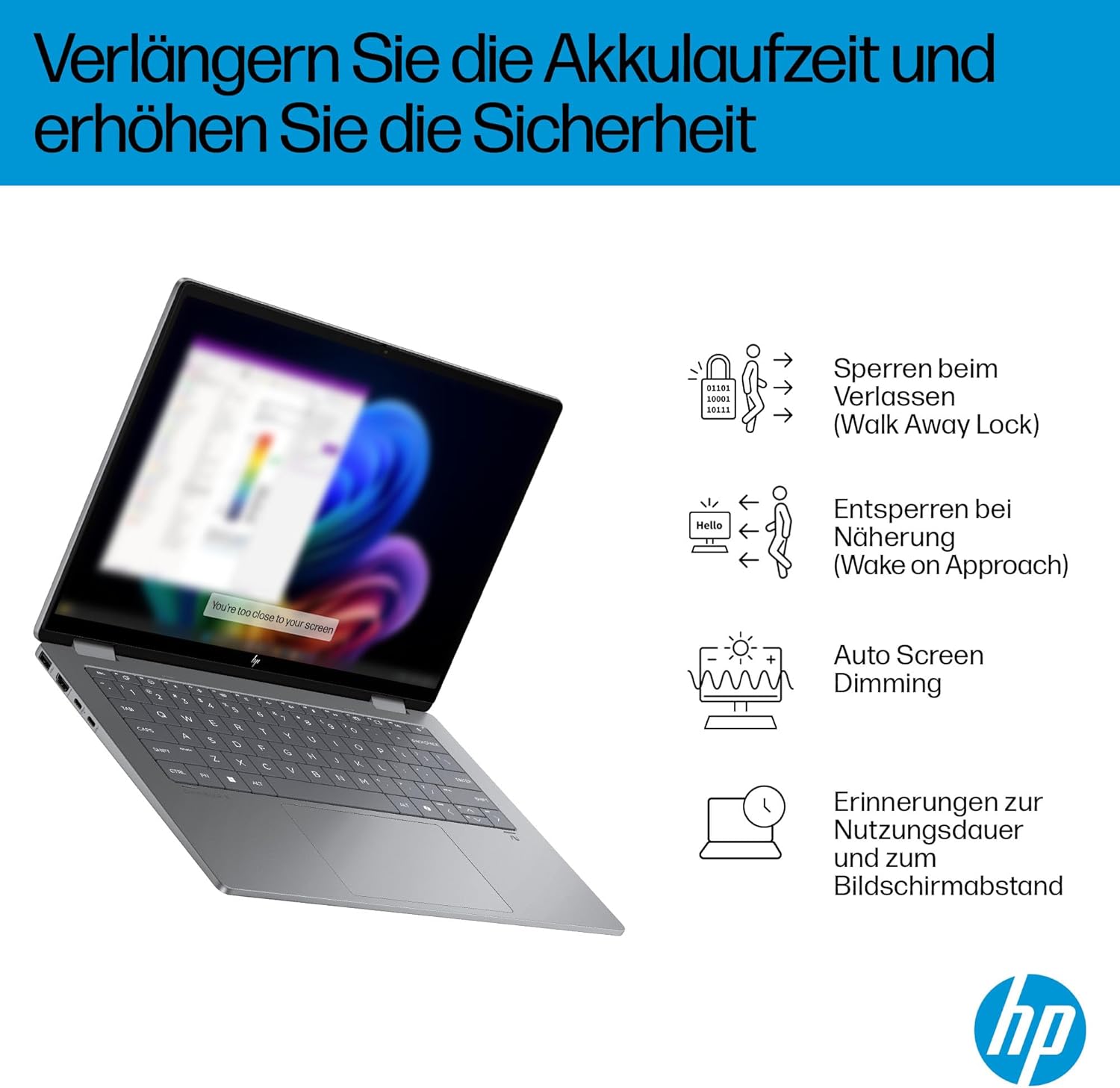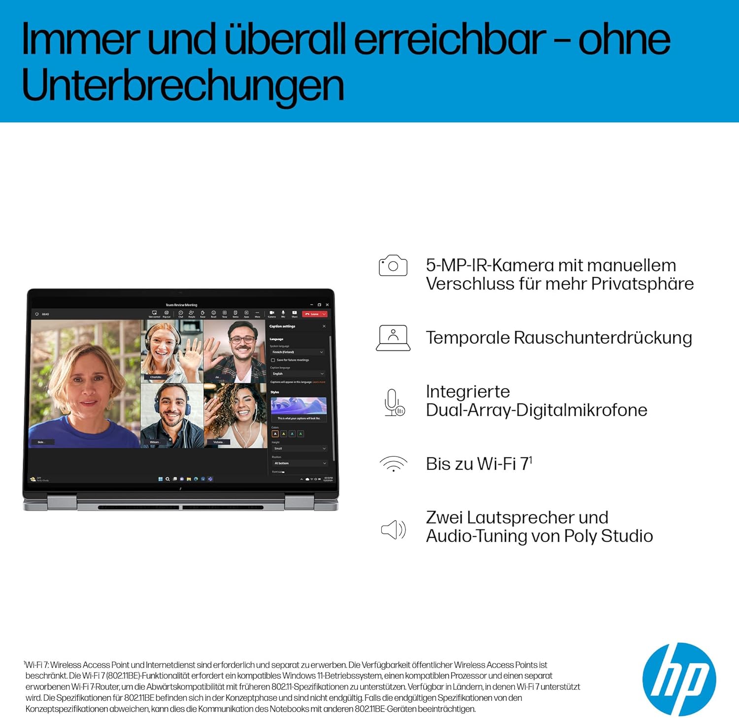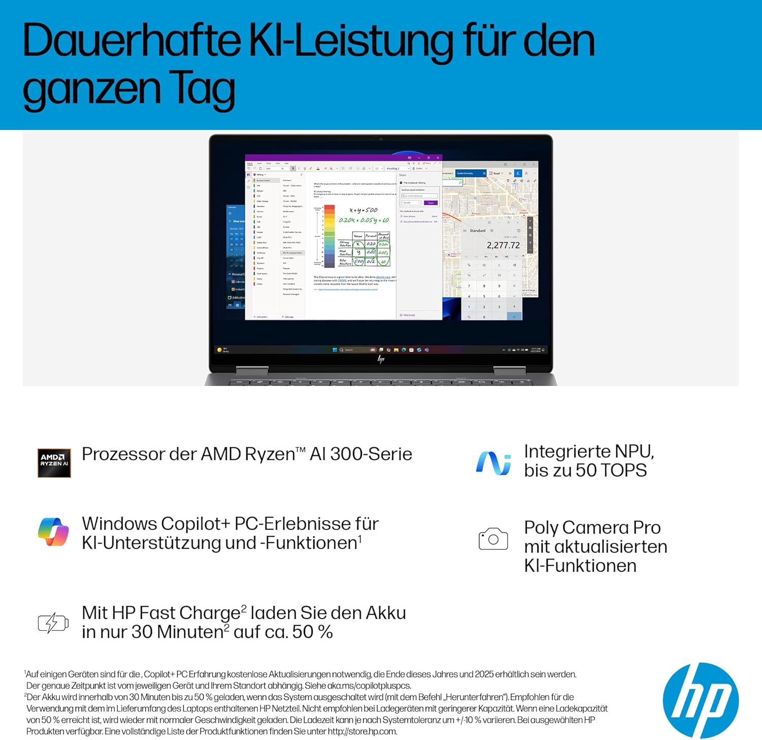 HP OmniBook X Flip 2-в-1 лаптоп от следващо поколение с изкуствен интелект | AMD Ryzen AI 7 350 (8C) | Специализиран NPU за изкуствен интелект | 50 NPU с най-много възможности | Copilot+ компютър | 14" WUXGA 1920x1200 сензорен екран | 16GB | 512GB SSD | Windows 11 | QWERTZ | Сребрист