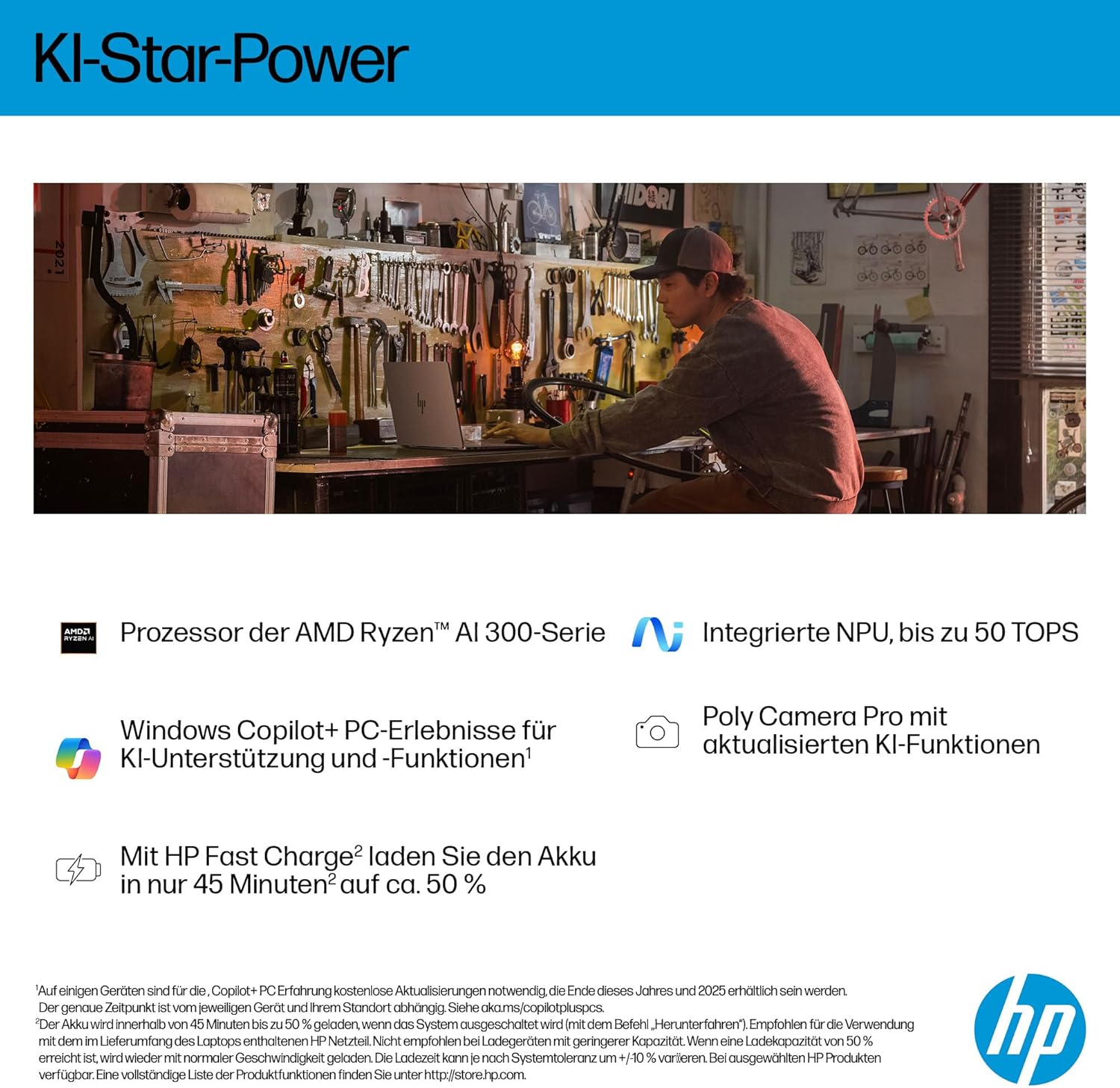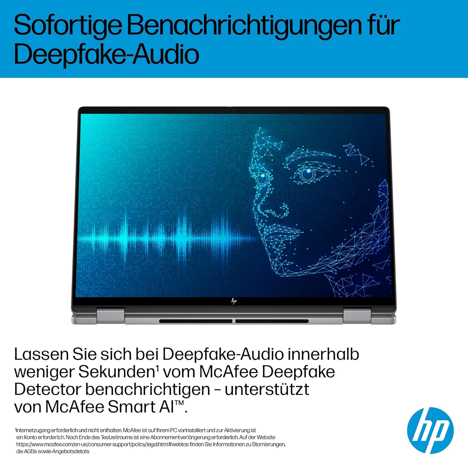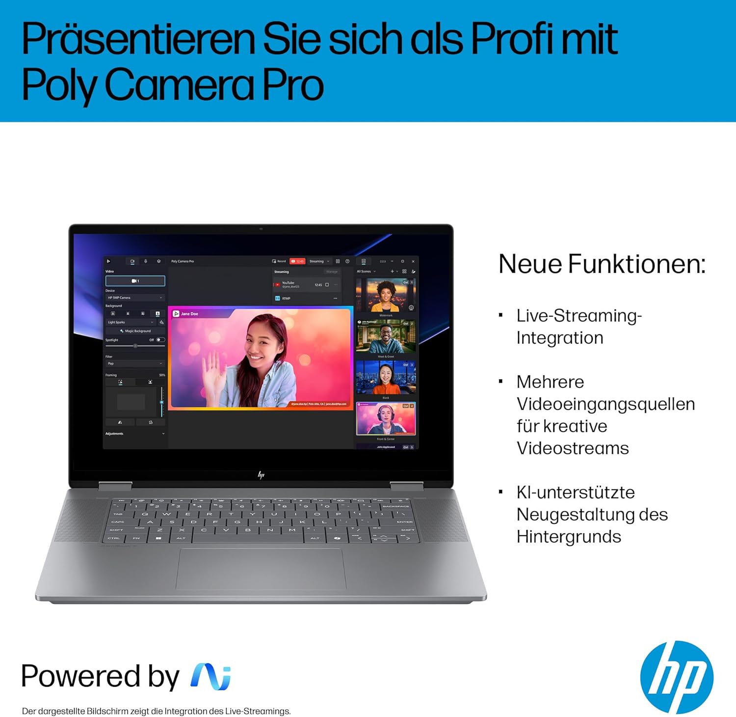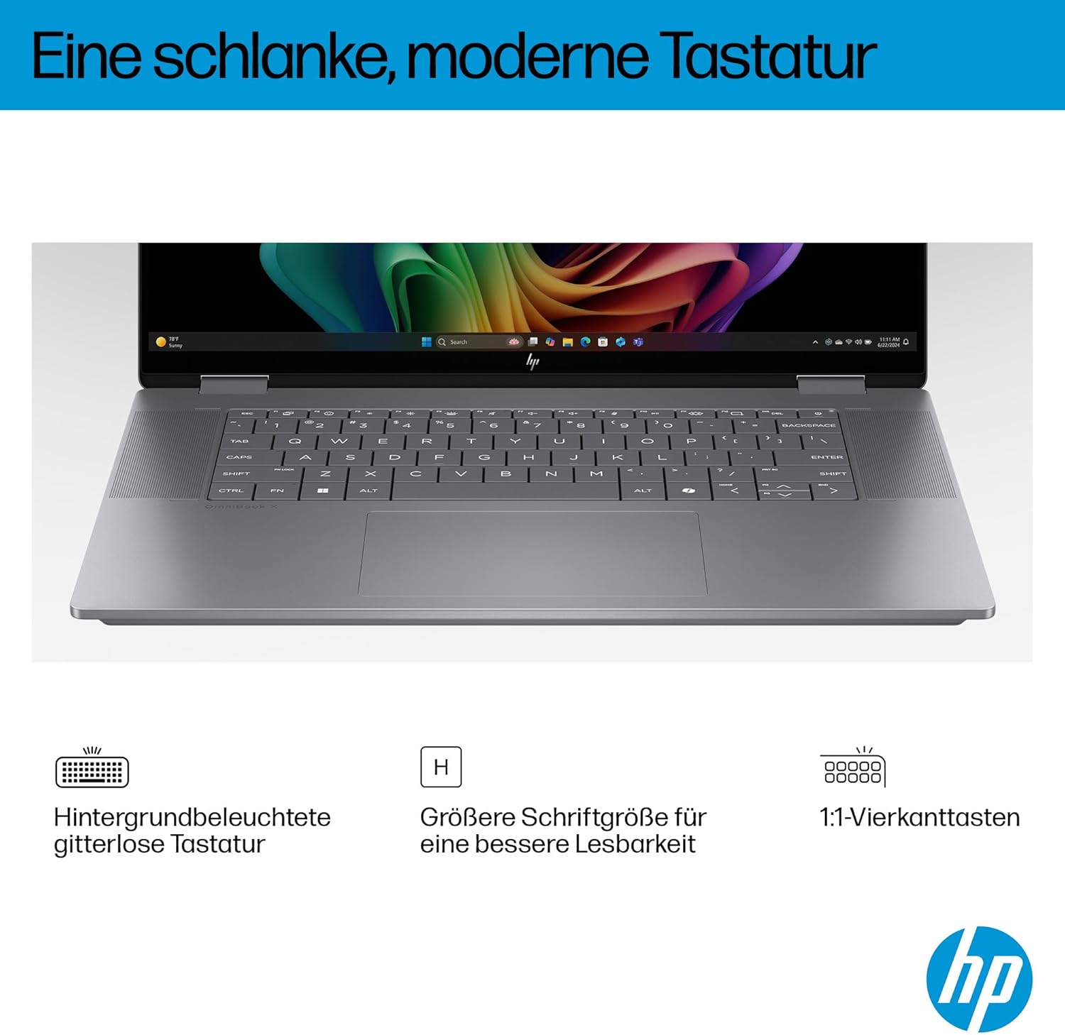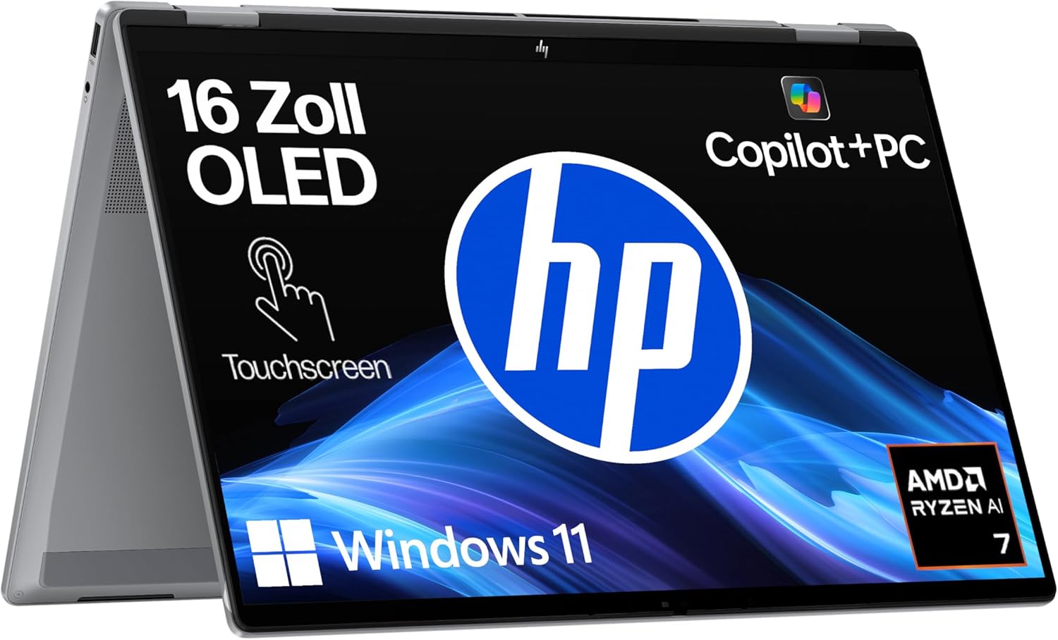 HP OmniBook X Flip 2-в-1 лаптоп от следващо поколение с изкуствен интелект | AMD Ryzen AI 7 350 (8C) | Специализиран NPU за изкуствен интелект | 50 NPU с най-много възможности | Copilot+ компютър | 16" 3K 2880x1800 OLED сензорен екран | 16GB | 1TB SSD | Windows 11 | QWERTZ | Сребрист