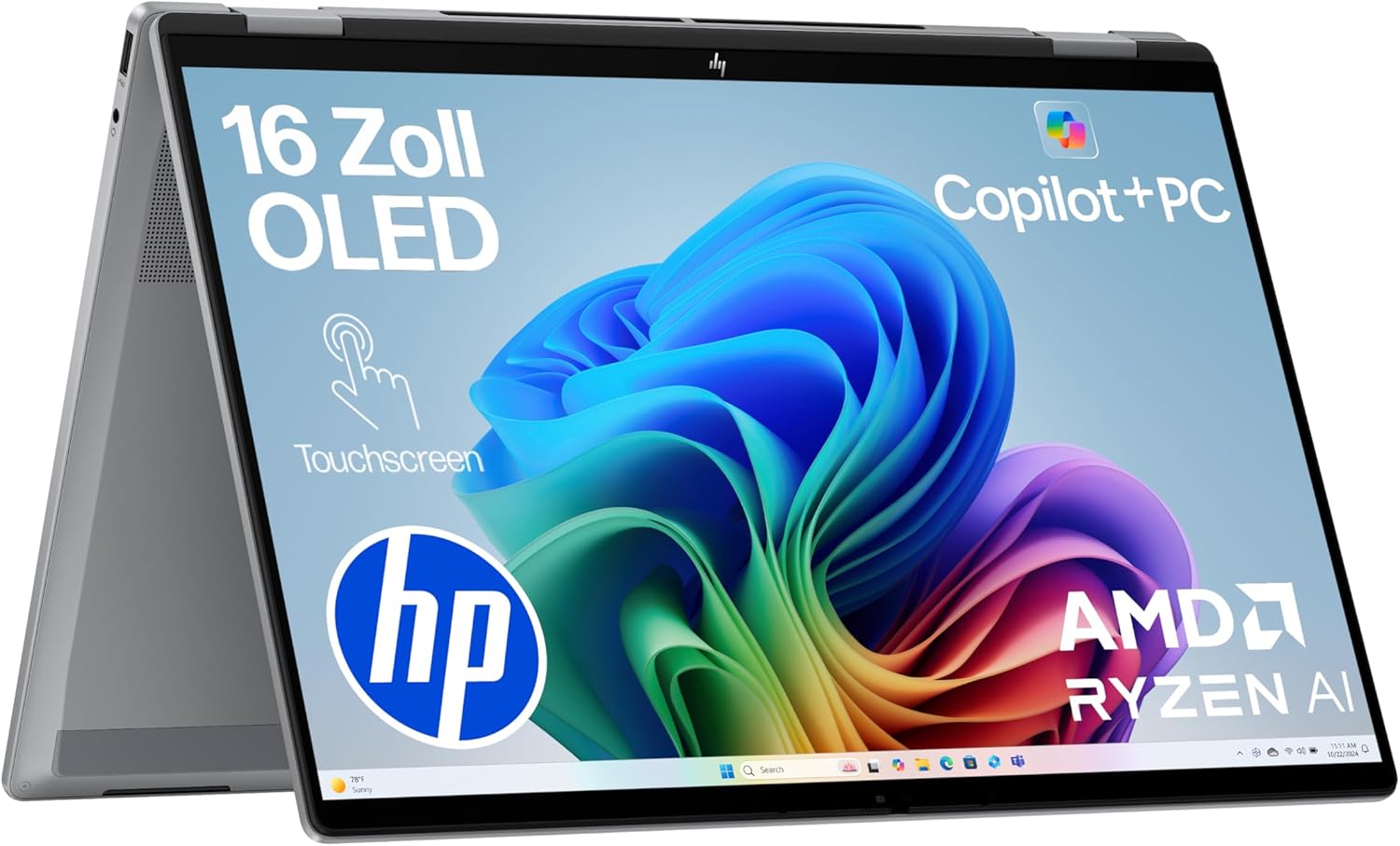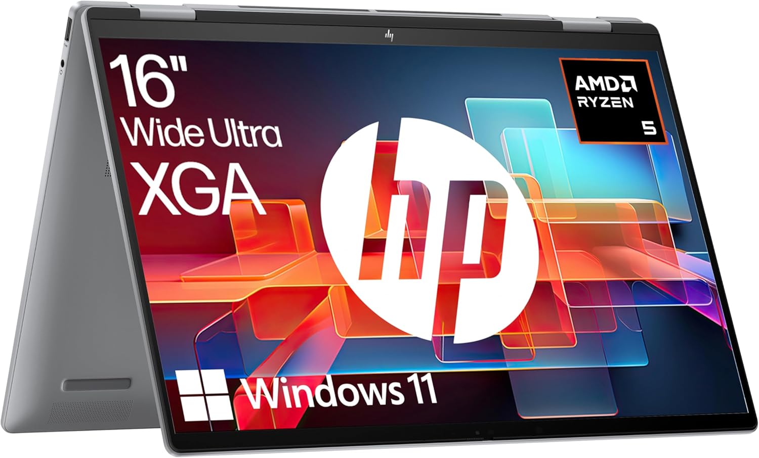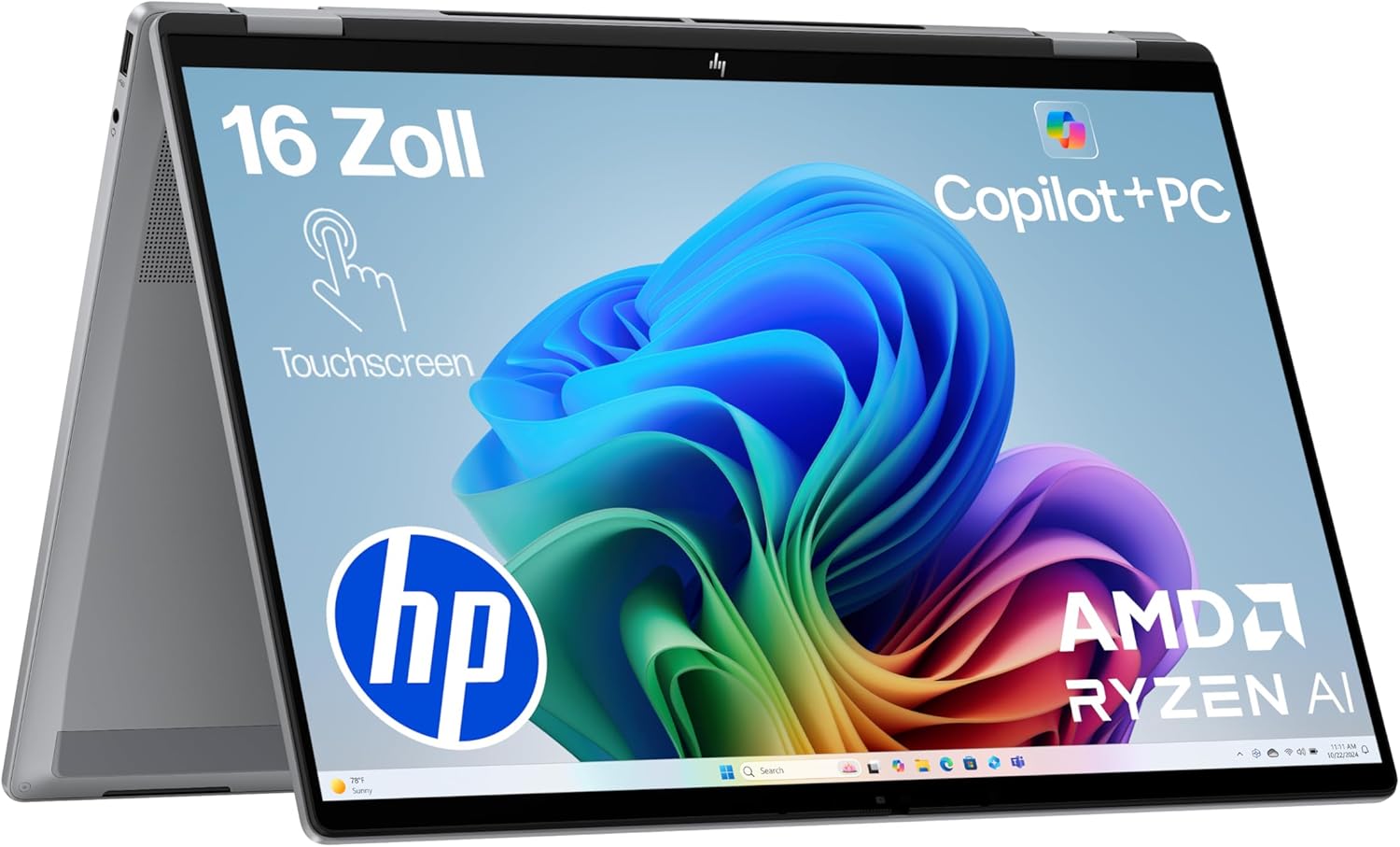 • HP OmniBook X Flip 16 ви позволява да работите и да се забавлявате в 4 удобни режима (сгъваем, палатка, таблет и обърнат); така че винаги можете да изберете най-добрия ъгъл на гледане, независимо дали сте в движение или у дома.