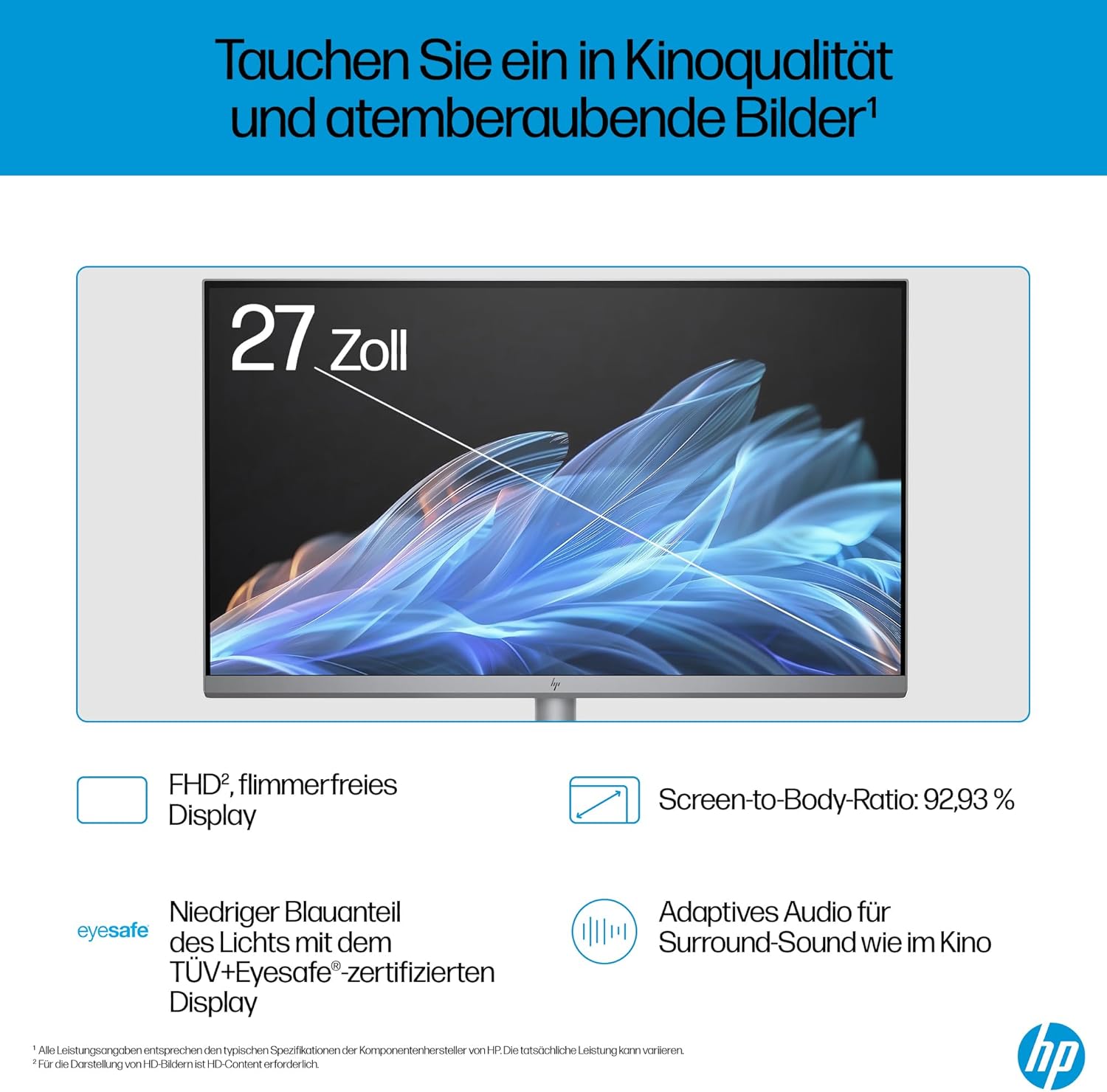 • 68,6 см (27-инчов) диагонал FHD (1920 x 1080) IPS дисплей с антирефлексно покритие, микрорамка от трите страни, 300 нита, 99% sRGB