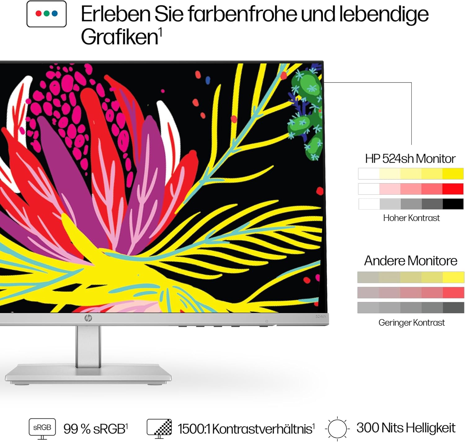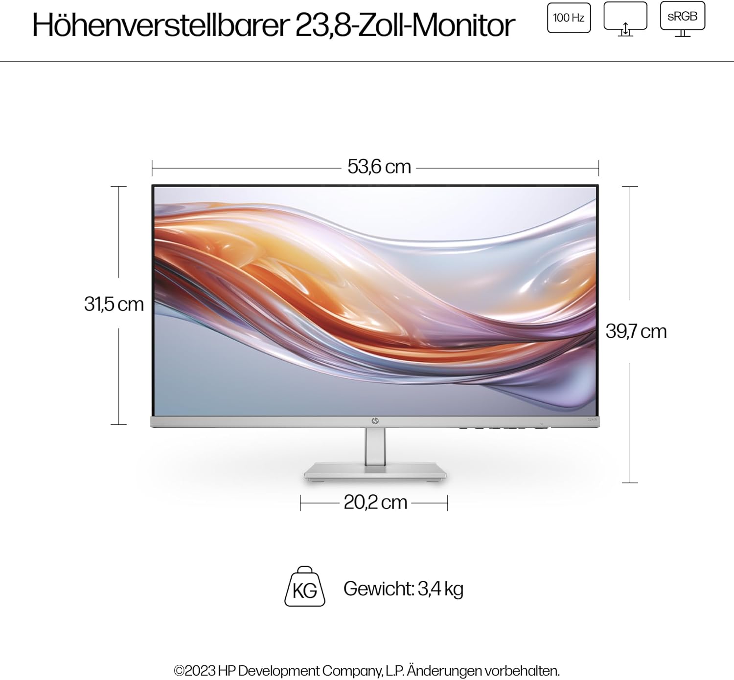HP серия 5 524sh FHD IPS монитор | 60,5 см (23,8 инча) | 100Hz | 1920 x 1080 пиксела (16:9) | Контраст 1500:1 | 99% sRGB | HDMI 1.4 | VGA | Регулиране на височината и наклона | Устойчиво произведен | Бял