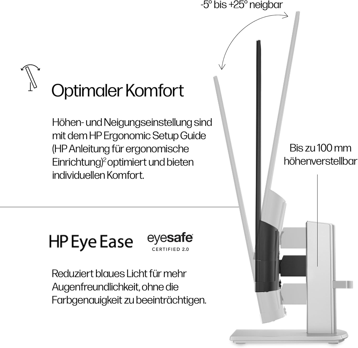 • Технология, щадяща очите: HP Eye Ease със сертификат Eyesafe намалява синята светлина, без да прави компромис с точността на цветовете, осигурявайки комфорт при продължителна работа или игра.