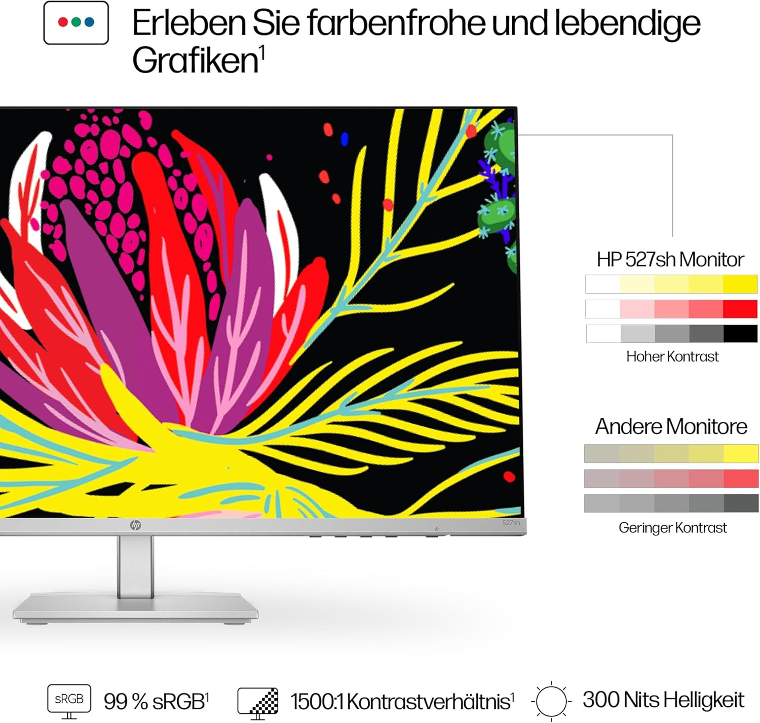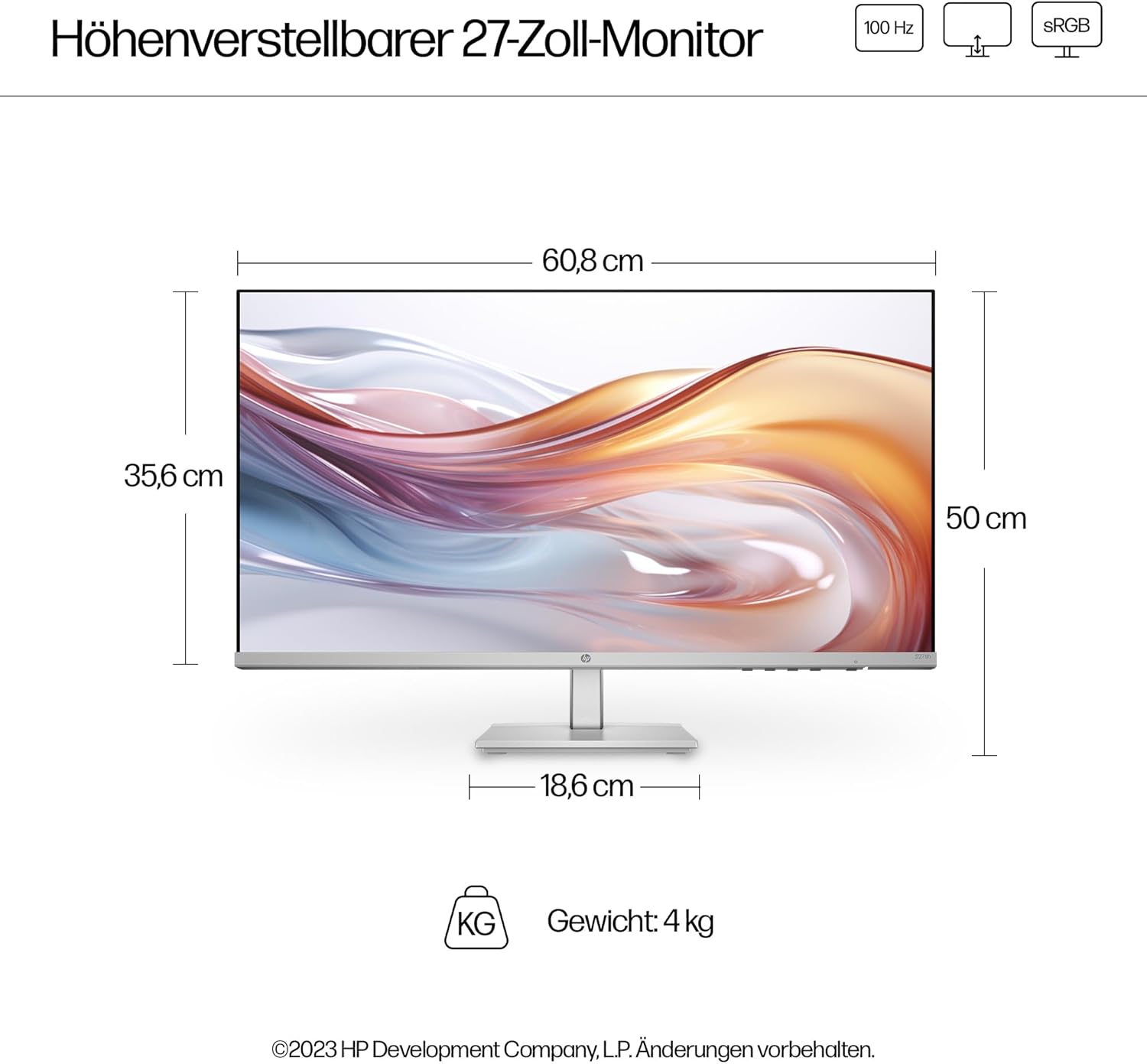 HP серия 5 527sh FHD IPS монитор | 68,6 см (27 инча) | 100Hz | Контраст 1500:1 | 99% sRGB | Два HDMI 1.4 | VGA | Рамка с микро ръб | Регулиране на височината и наклона | Произведено по устойчив начин | Черен