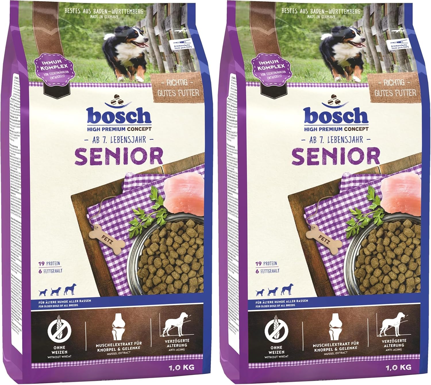 Птиче брашно, ориз, ечемик, царевица, просо, сушена цвеклова пулпа (обеззахарена), целулозен прах, протеинов хидролизат, животински мазнини, рибно брашно, грах, рибено масло, мая (сушена, вкл. 0,1% манан-олигозахариди, 0,06% β-глюкани), калиев хлорид, натриев хлорид, екстракт от зеленоуста мида (0,1%), цикория (сушена)