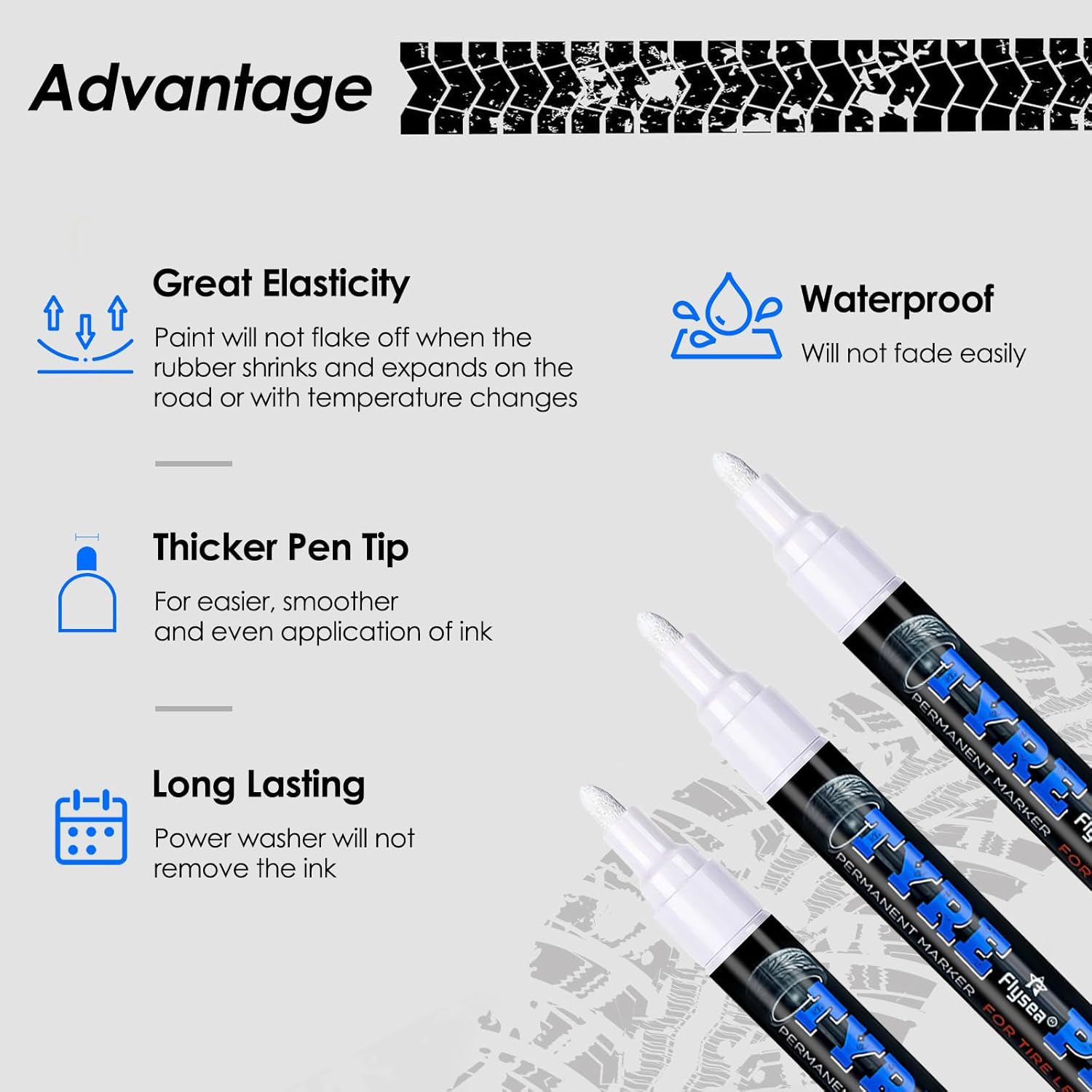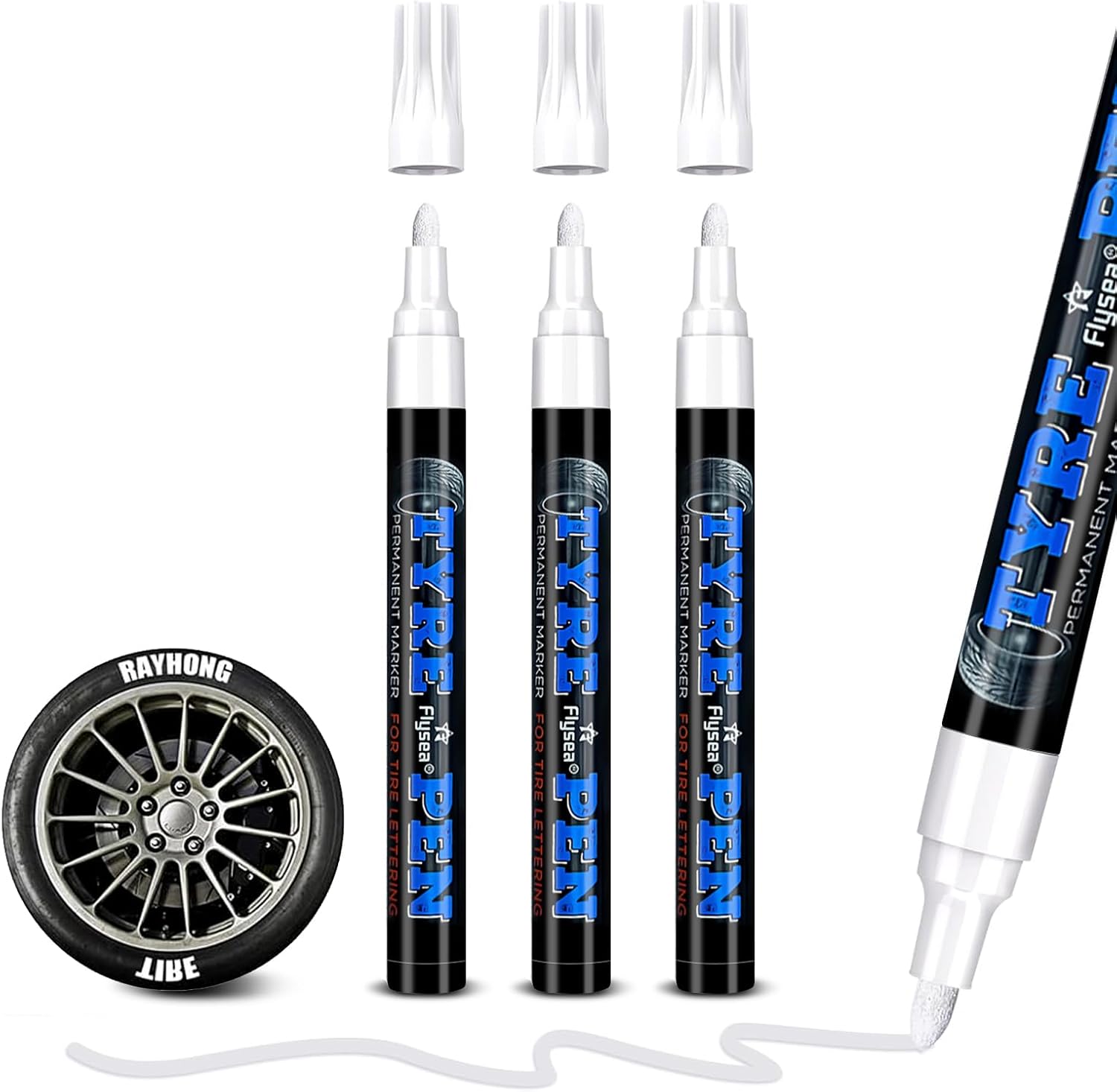 Hsypti Пакет от 3 маркера за автомобилни гуми, бял, маркер за гуми с висок капацитет, водоустойчив маркер за автомобилни гуми, маркери за боядисване на гуми за автомобили, мотоциклетни гуми