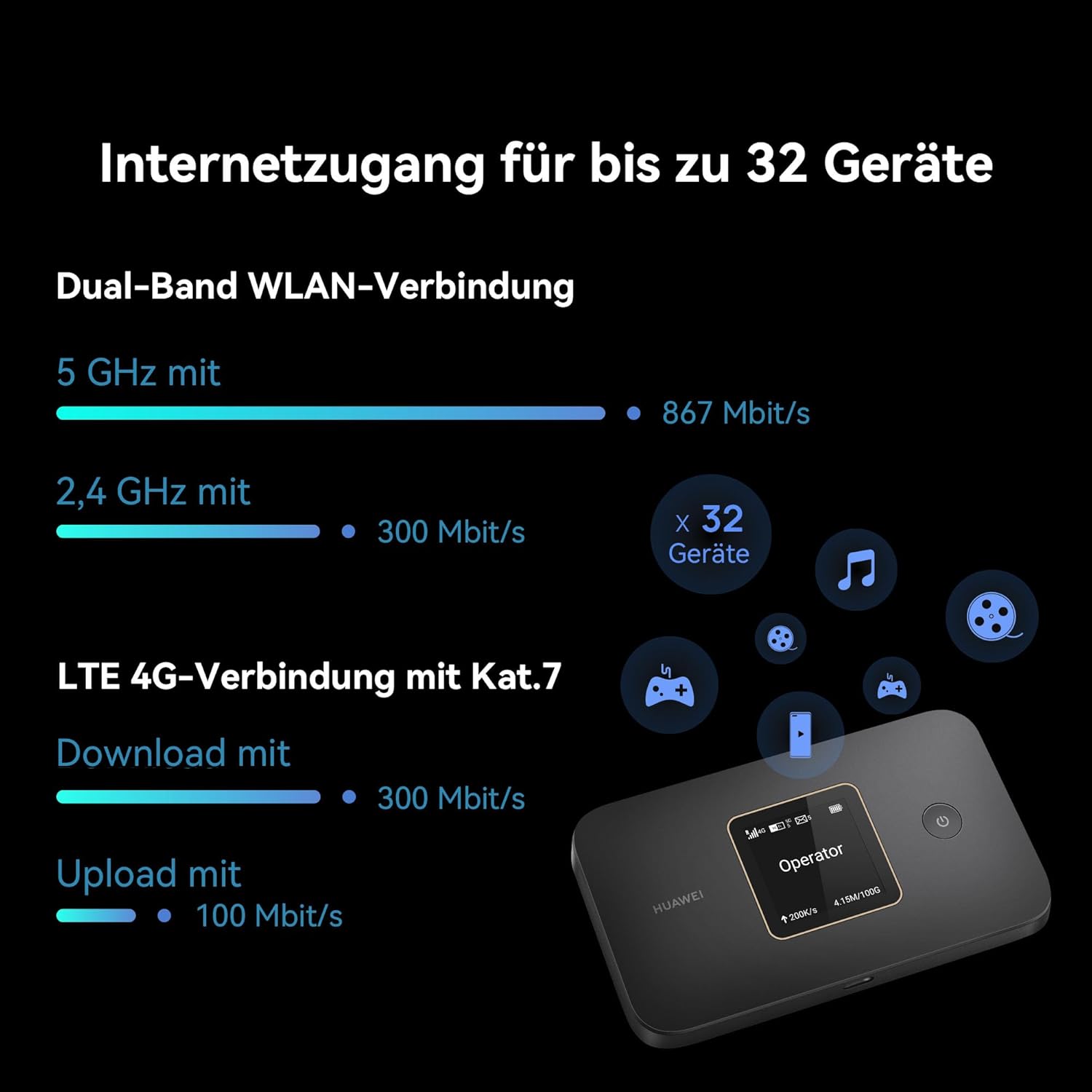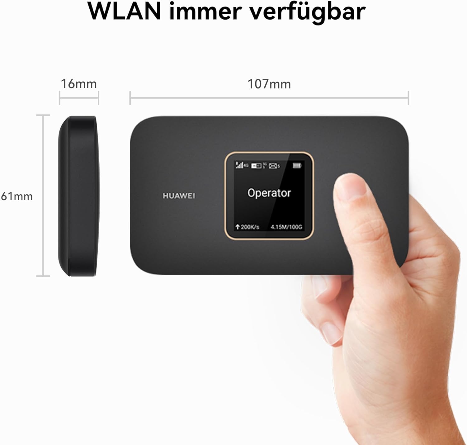 HUAWEI 4G Мобилен WiFi 3 (с екран), Рутер, Преносима мобилна точка за достъп, Мобилен рутер Cat 7 със SIM карта, LTE с 300 Mbps сваляне, Съвместим с всички SIM карти, 30 месеца гаранция