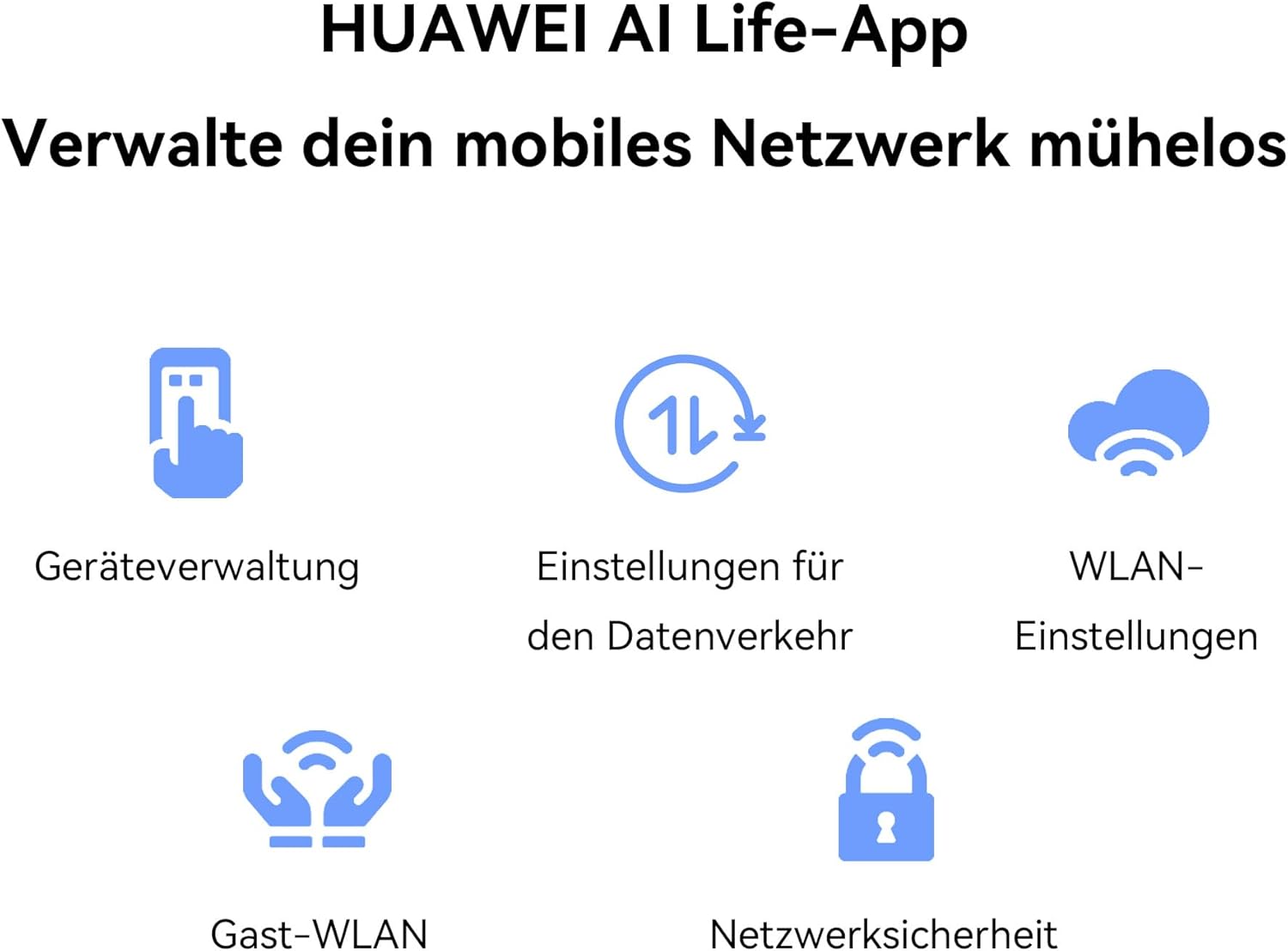 • [Управлявайте мобилната си мрежа без усилие чрез телефона си]: с приложението HUAWEI AI Life можете да използвате дигитално, интелигентно управление, включително настройки за трафик, WiFi за гости, мрежова сигурност и др.