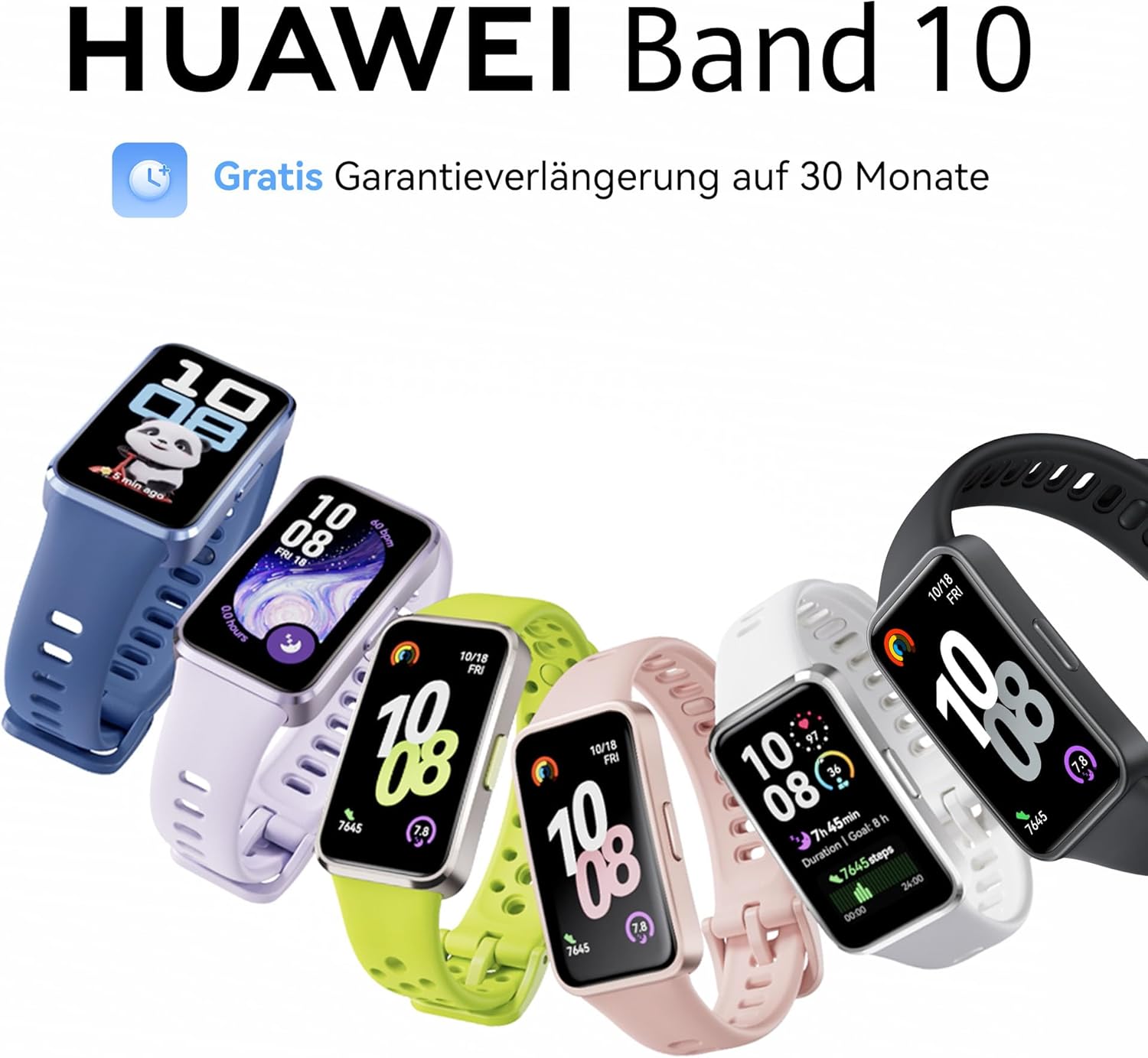 • [Цветни гривни, които ще харесате]: Стилната HUAWEI Band 10 предлага широка гама от цветове, розово и черно (от издръжлив полимерен корпус) или зелено, синьо, лилаво, бяло (от корпус от алуминиева сплав).