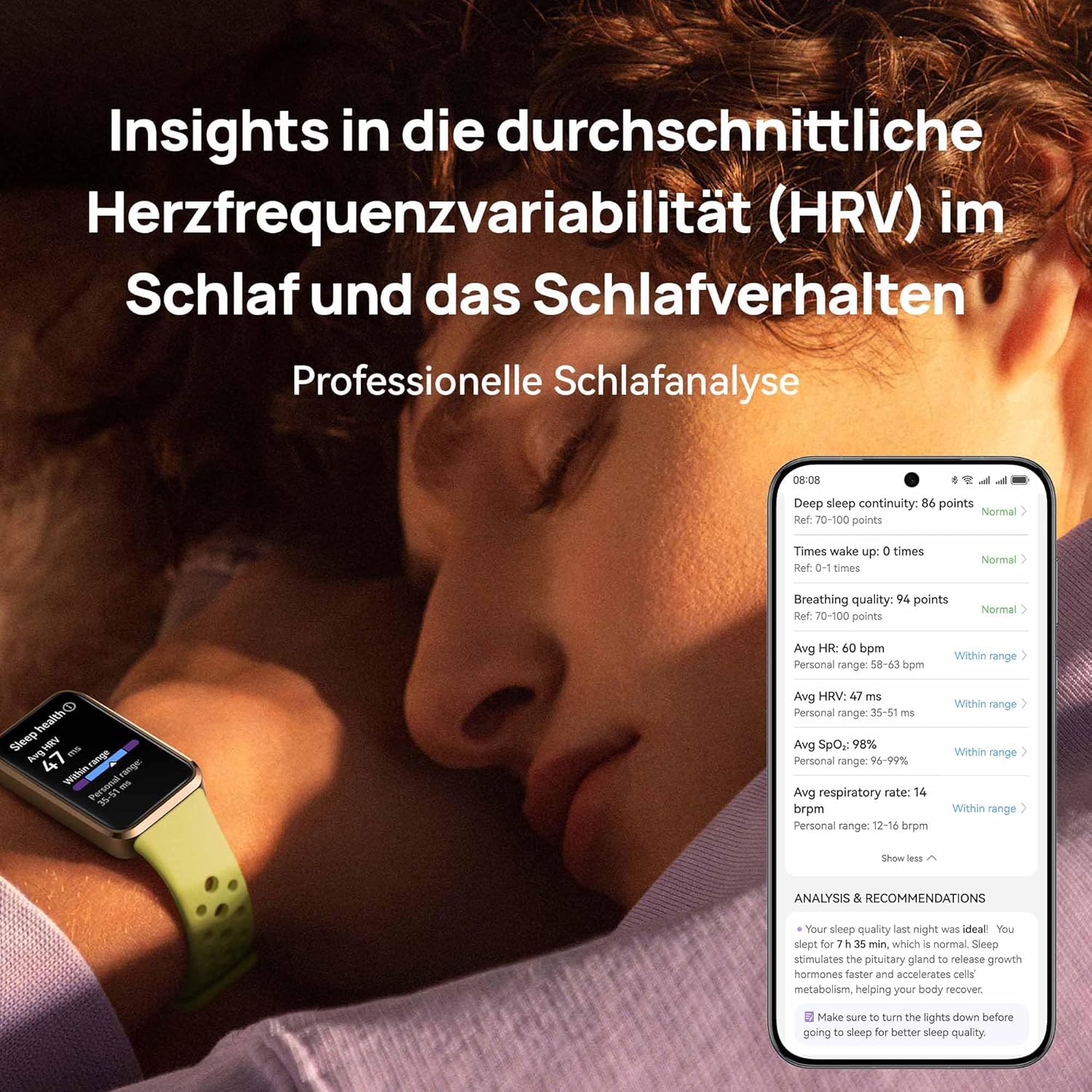 • [Професионален анализ на съня]: Band 10 следи сърдечната честота, SpO2, честотата на дишане и неравномерното дишане. Благодарение на физиологичните данни, подробните анализи и тенденциите на продължителността на съня, качеството на съня, фазите на дълбокия сън и други.