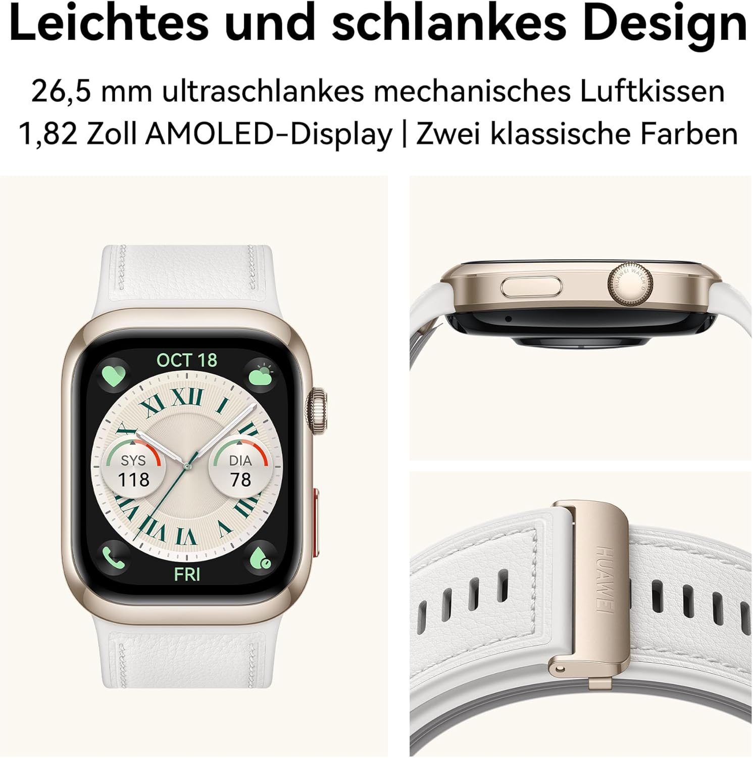 • Иновативна гривна с ултратънка въздушна възглавница: Дизайнът 2 в 1 съчетава ултратънка въздушна възглавница с диаметър само 26,5 мм, която приляга удобно и може лесно да се надуе. Дишащият, отвеждащ потта и щадящ кожата материал осигурява максимален комфорт - дори при продължителна употреба. Благодарение на практичния бутон за бързо освобождаване, гривната може лесно да се сваля и бързо да се постави отново.