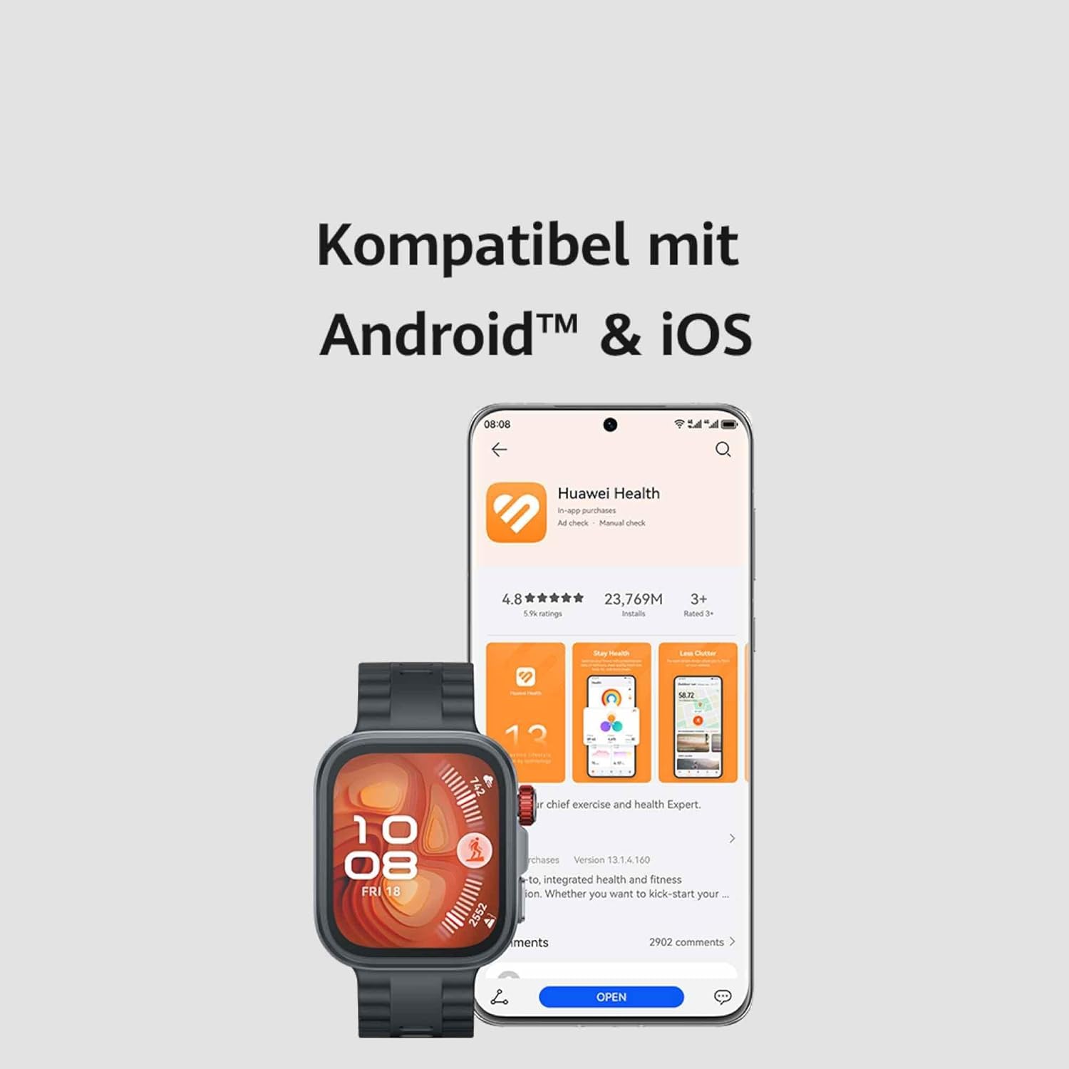 • Пълна съвместимост: HUAWEI Watch Fit 4 е съвместим както с iOS, така и с Android, така че да останете свързани, да следите фитнес целите си и да получавате известия в реално време - всичко това при ваши собствени условия.