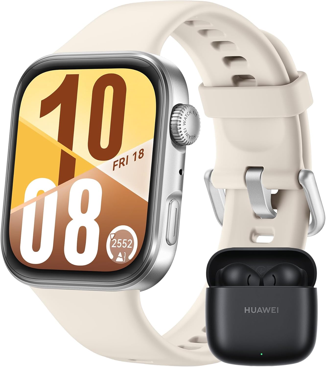 HUAWEI Watch FIT 4 смарт часовник + FreeBuds SE 2, спортен фитнес тракер, водоустойчивост 5ATM, здравни данни, батерия до 10 дни, съвместим с Android™ и iOS, лилав