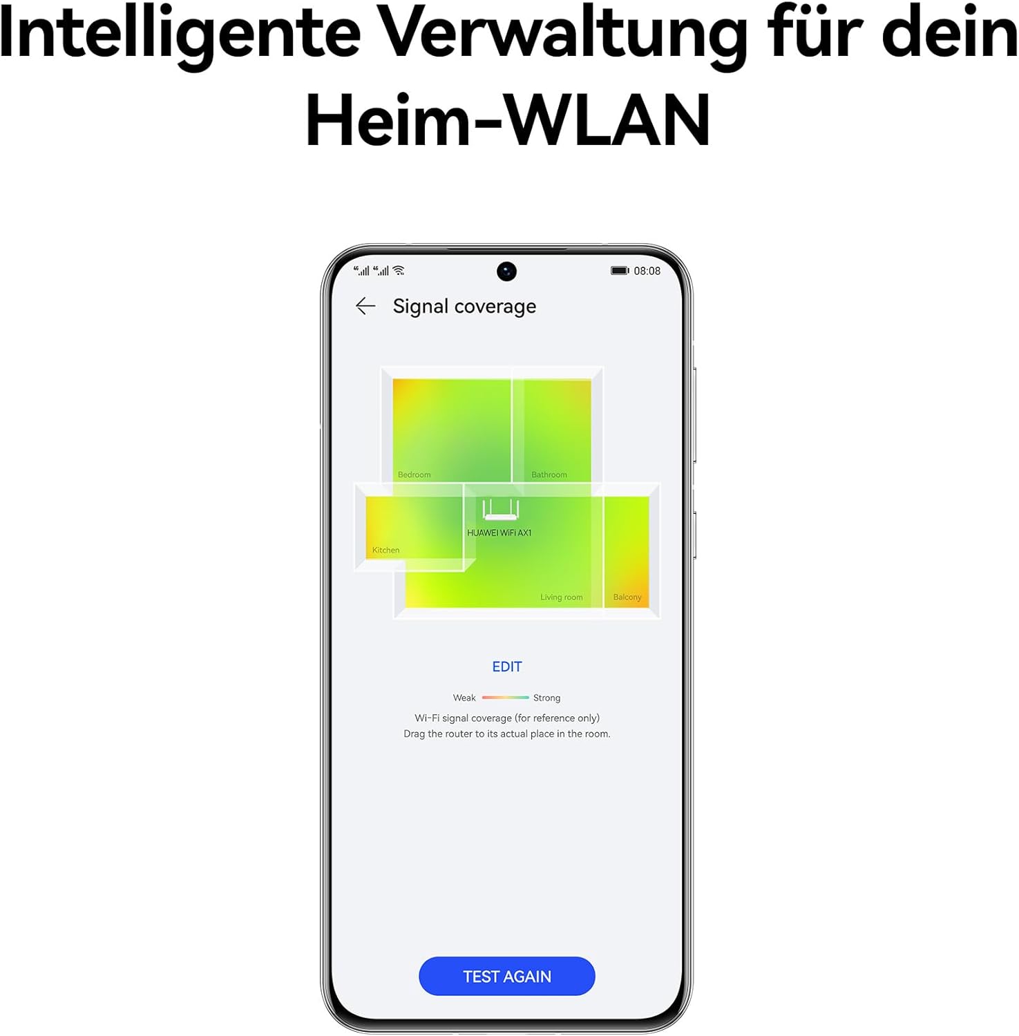 • Визуализирана WiFi диагностика: Използвайте приложението Huawei AI Life, за да създадете топлинна карта с едно щракване и да видите мрежовото покритие в реално време. То също така поддържа откриване и диагностициране на мрежови грешки в повече от 80 сценария.