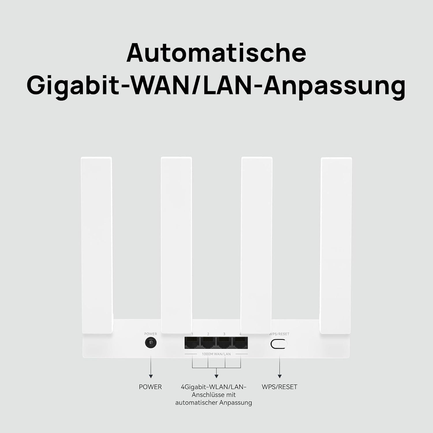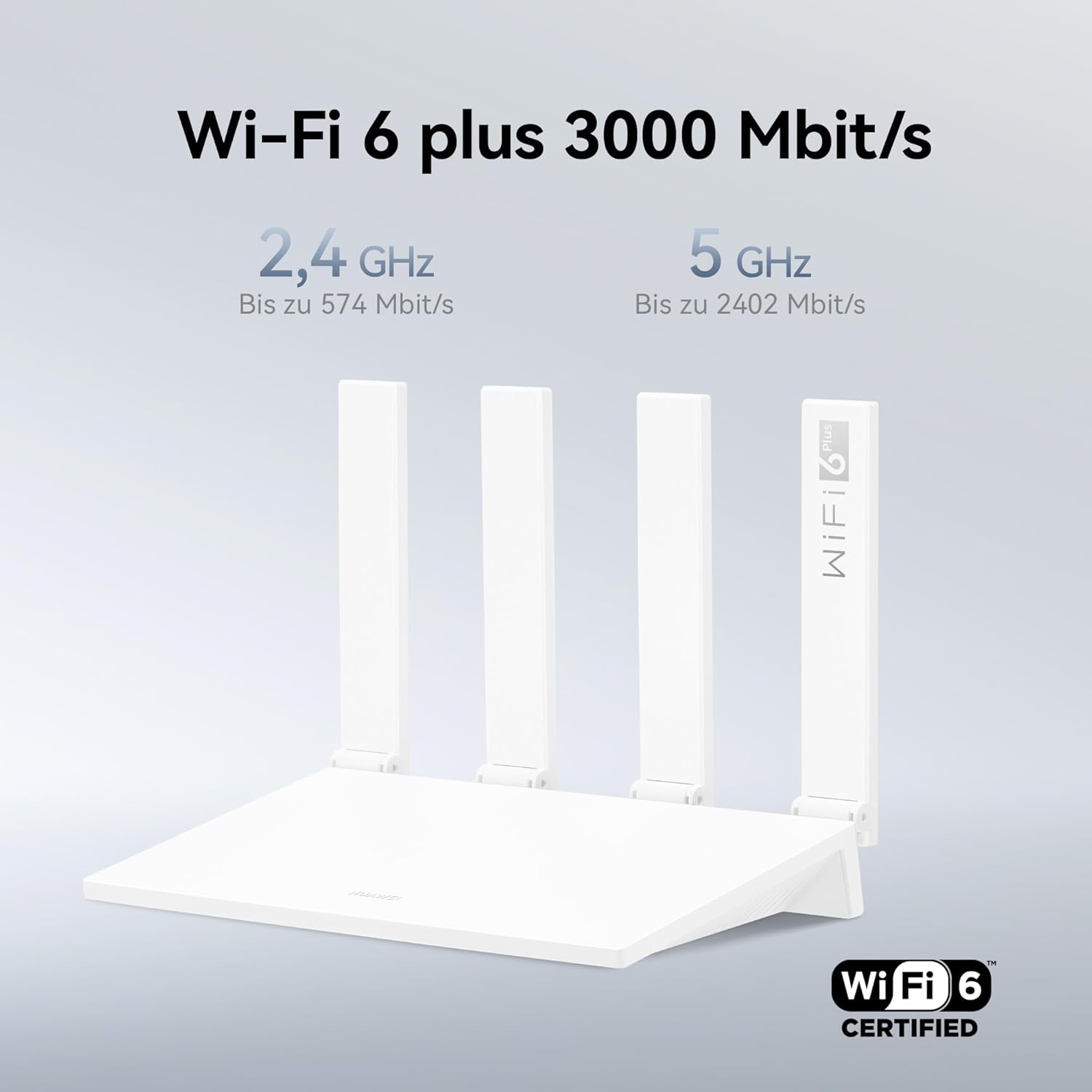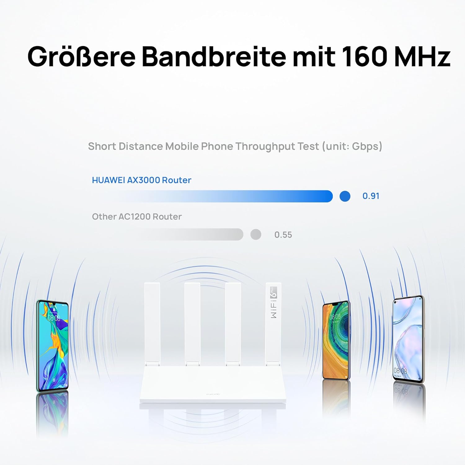 HUAWEI WiFi AX3 Нов рутер, Wi-Fi 6, 3000 Mbps, По-голяма честотна лента със 160 MHz, Интелигентно управление на домашния ви WiFi, Пълно WiFi покритие, с HarmonyOS Mesh+, Бял