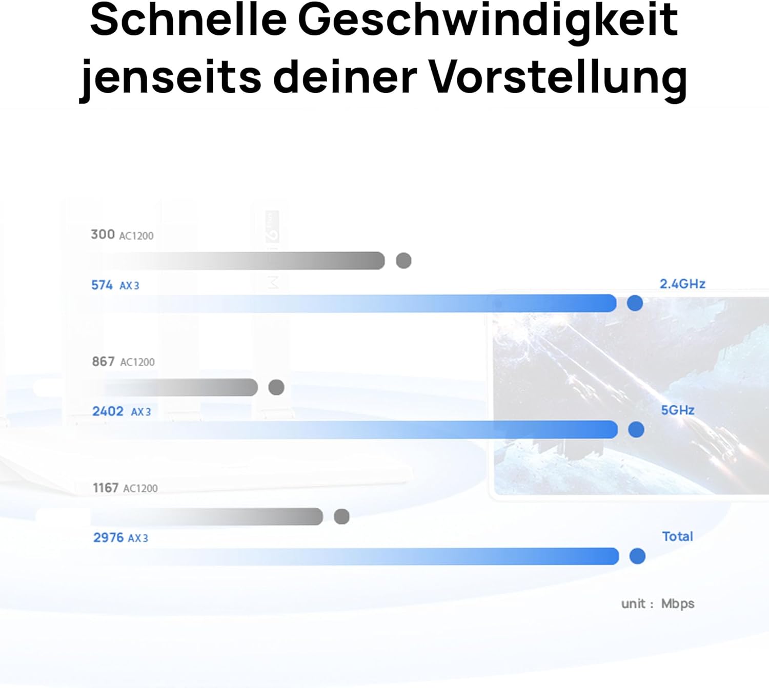• По-голям обхват: мощният усилвател на сигнала на HUAWEI WiFi BE3 усилва вашия WiFi сигнал през стени и препятствия от всякакъв вид и постига по-дълъг обхват, така че е гарантирано, че той ще достигне бързо до вашите устройства.
