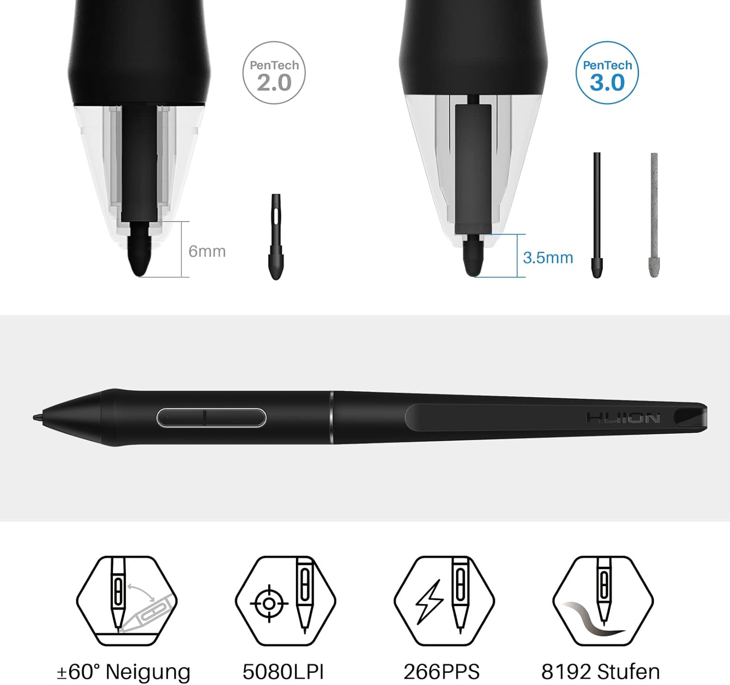 • Писалка без батерии за пестене на енергия: Графичният таблет HUION Inspiroy H430P е оборудван с писалка PW201 без батерии и вече не е необходимо да се зарежда. Писалката, чувствителна на натиск, ви позволява да рисувате по-естествени линии с най-висока прецизност и контрол. Реакция на накланяне и проследяване практически без забавяне, използвайте като мишка с писалка.
