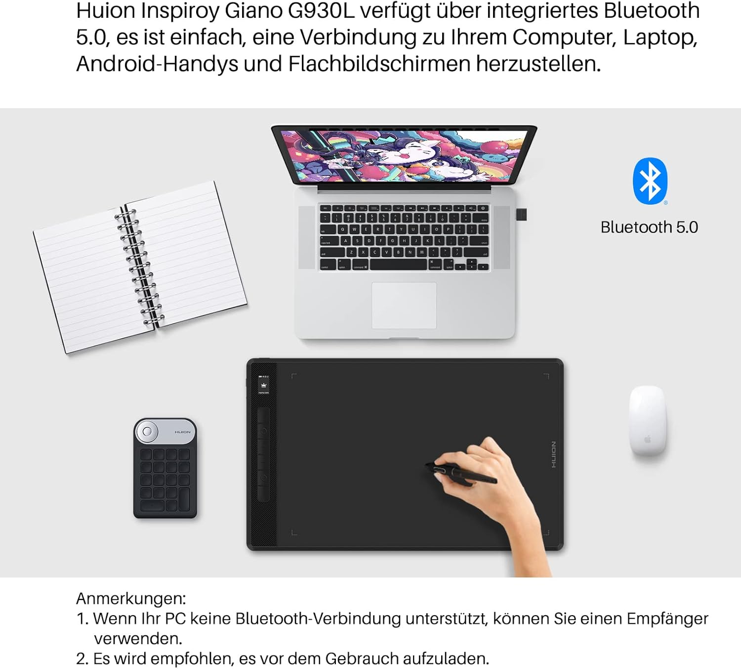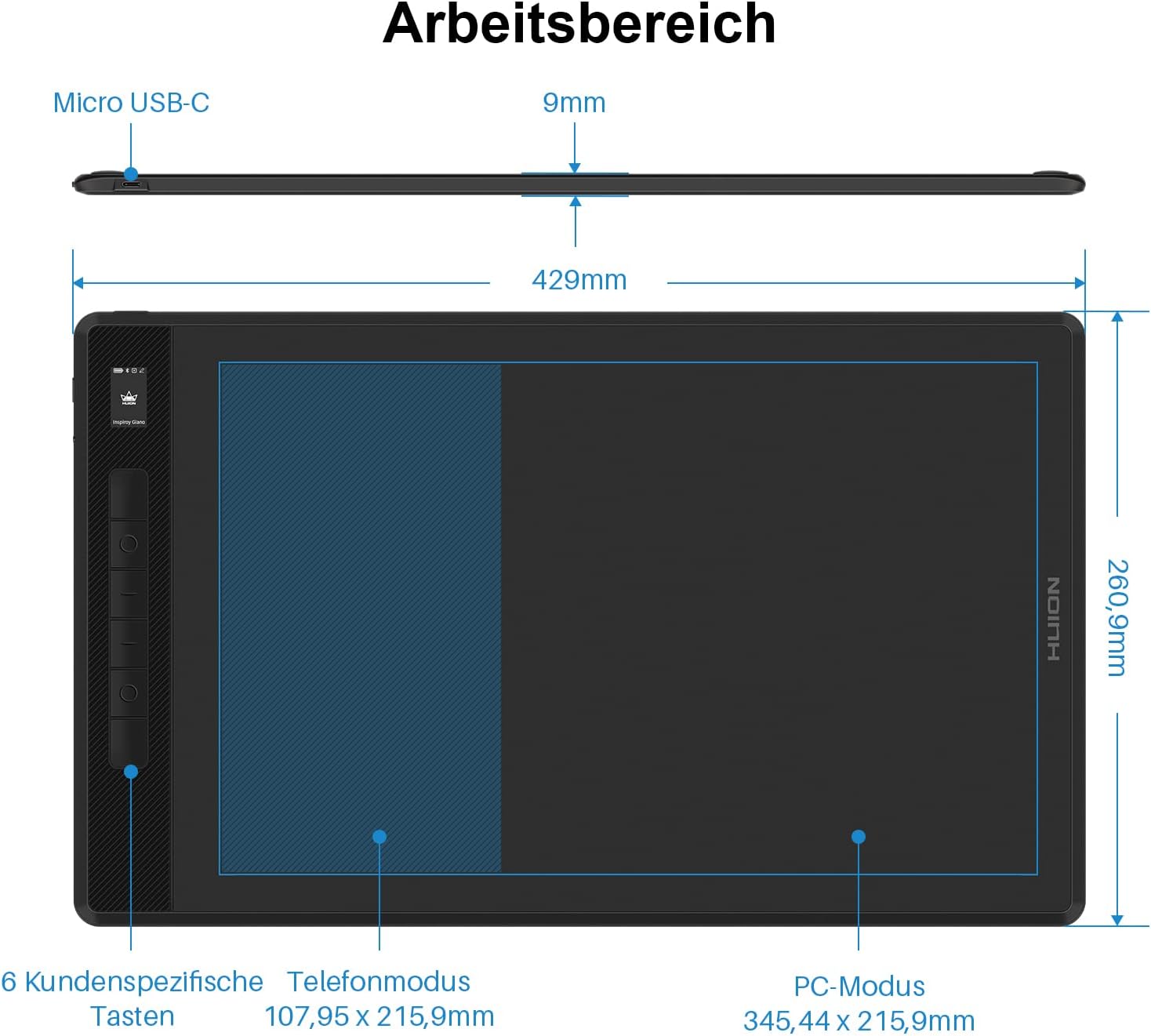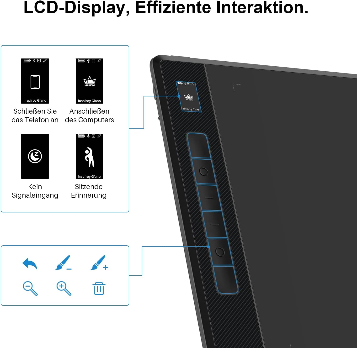 HUION Inspiroy Giano G930L Bluetooth графичен таблет с интелигентен мини LCD екран и писалка PW517 без батерии с 8192 нива на налягане, 13,6-инчов безжичен таблет за рисуване за дизайнери и художници