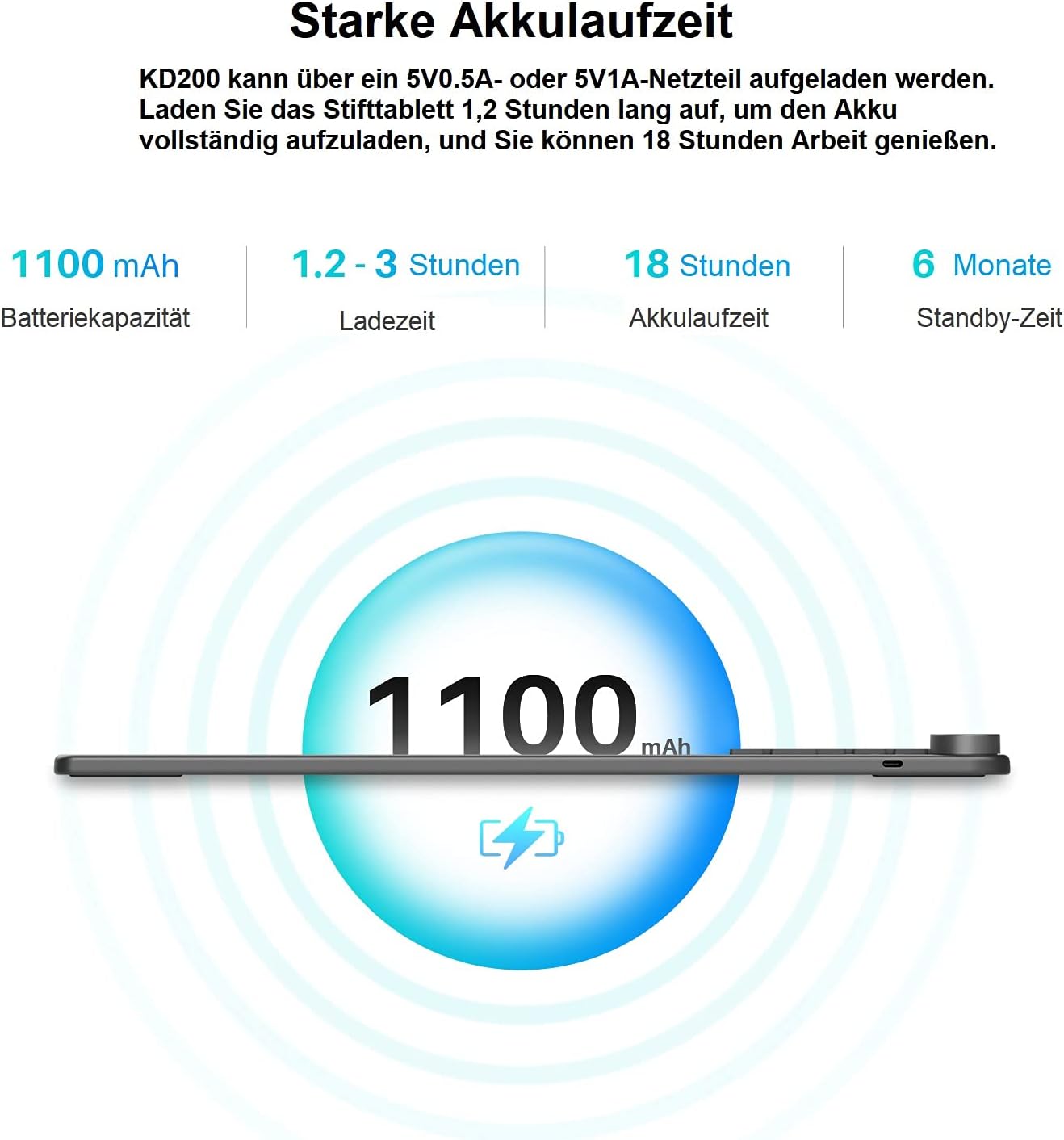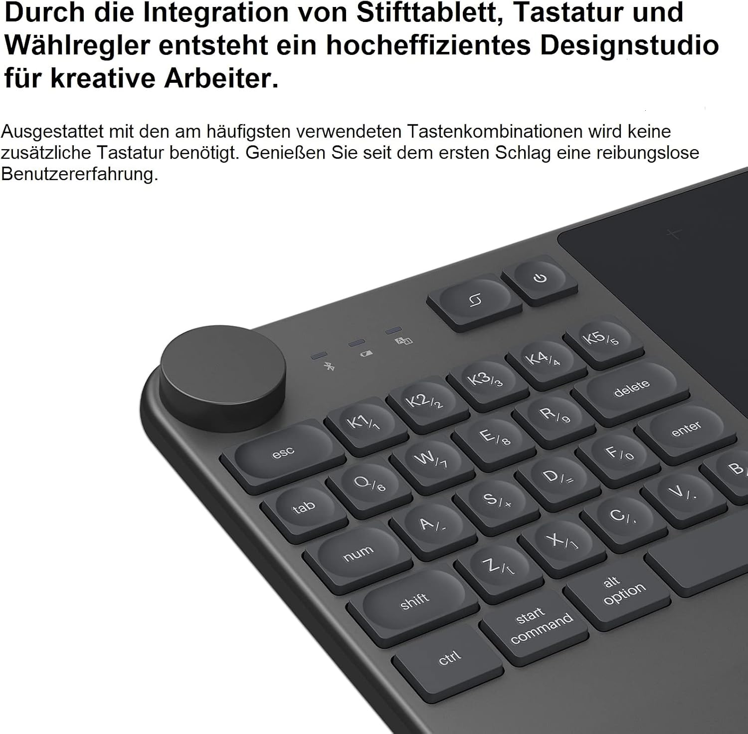 HUION Inspiroy Keydial KD200 Bluetooth 5.0 графичен таблет 8.9 x 5.6 инча, комбиниран с клавиатура и контролер за циферблат, подходящ за начинаещи и професионални дизайнери.