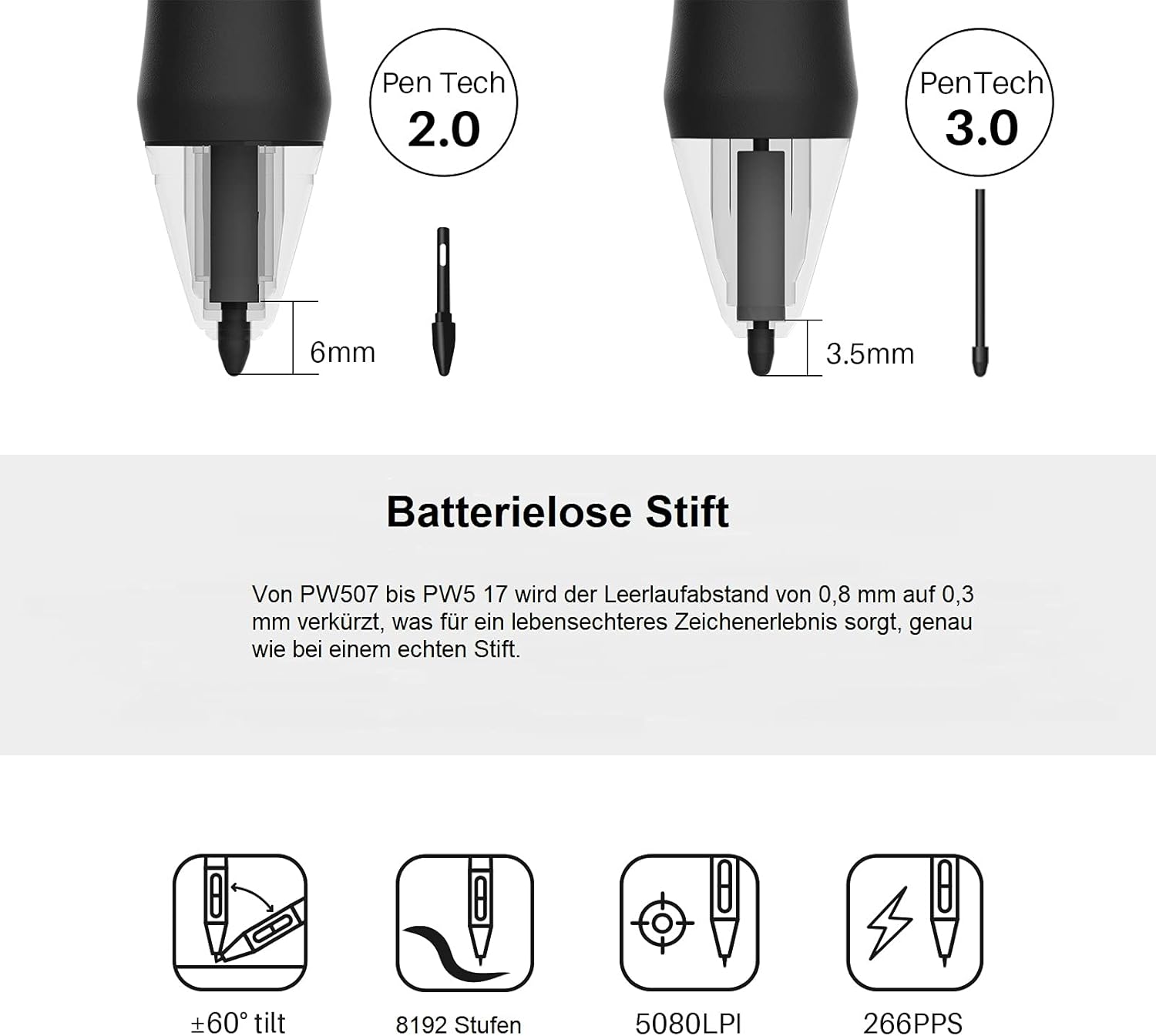 • Писалка без батерии за пестене на енергия: Графичният таблет HUION Inspiroy H430P е оборудван с писалка PW201 без батерии и вече не е необходимо да се зарежда. Писалката, чувствителна на натиск, ви позволява да рисувате по-естествени линии с най-висока прецизност и контрол. Реакция на накланяне и проследяване практически без забавяне, използвайте като мишка с писалка.