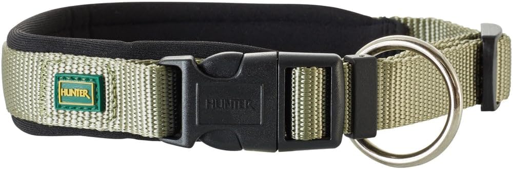 HUNTER Неопренов нашийник Vario Plus за кучета, найлон с неопренова подплата 50/2.0 (ML), маслиненозелен / черен