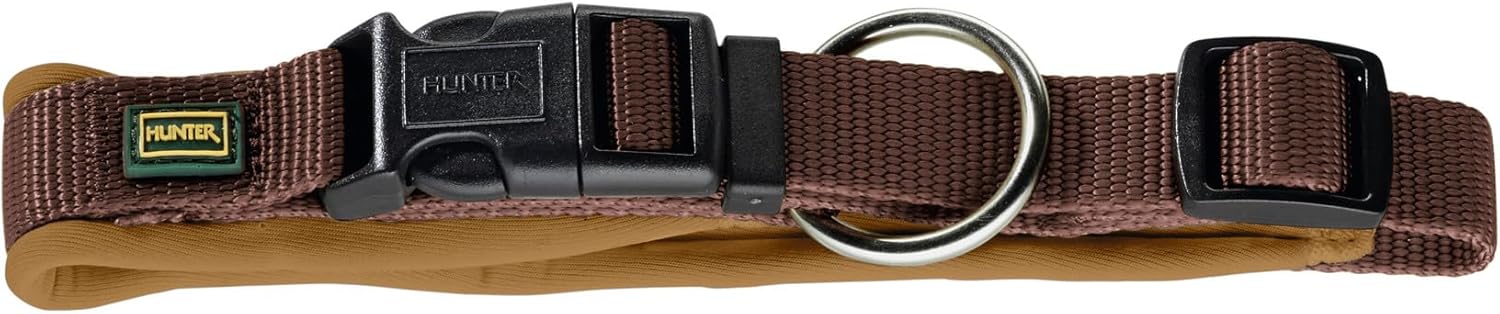 HUNTER Неопренов нашийник Vario Plus за кучета, найлон с неопренова подплата 60/2.5 (L-XL), кафяв/карамелен