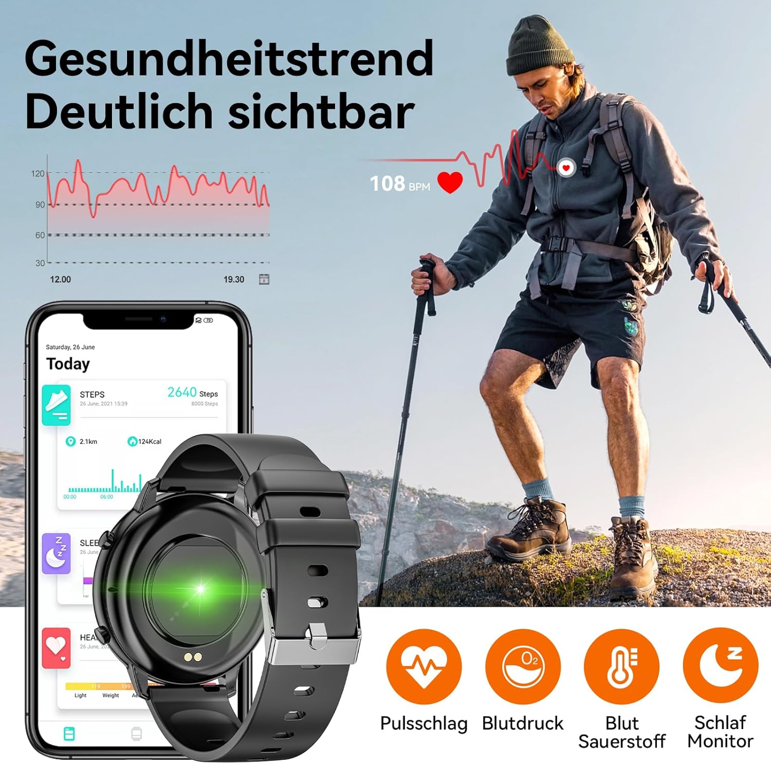 • 24/7 Мониторинг на здравето Този смарт часовник за жени и мъже е оборудван със сензор за сърдечен ритъм, комбиниран с високотехнологична измервателна технология, за наблюдение на динамичния сърдечен ритъм в реално време. Автоматично наблюдение и записване на продължителността и фазите на съня. Всички данни могат да бъдат анализирани синхронно с вашия телефон, допринасяйки за по-здравословен начин на живот.