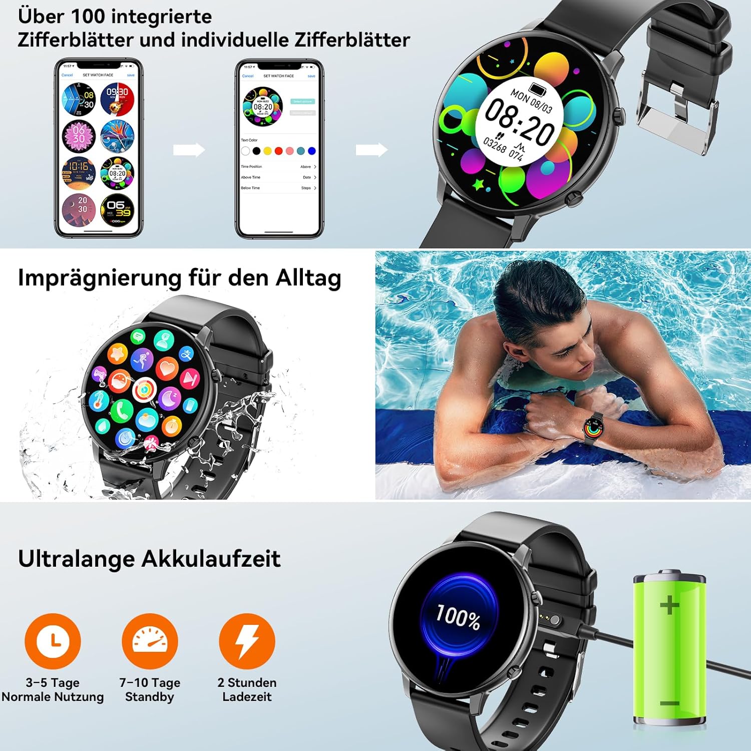 • Широка съвместимост: Този смарт часовник за мъже и жени е съвместим с повечето смартфони с iOS 8.2 и Android 5.1 и по-нови версии (не е съвместим с PC, iPad и таблети). Предлагаме едногодишна гаранция, моля, не се колебайте да се свържете с нас, ако имате някакви въпроси, ние ще направим всичко възможно да ви помогнем.