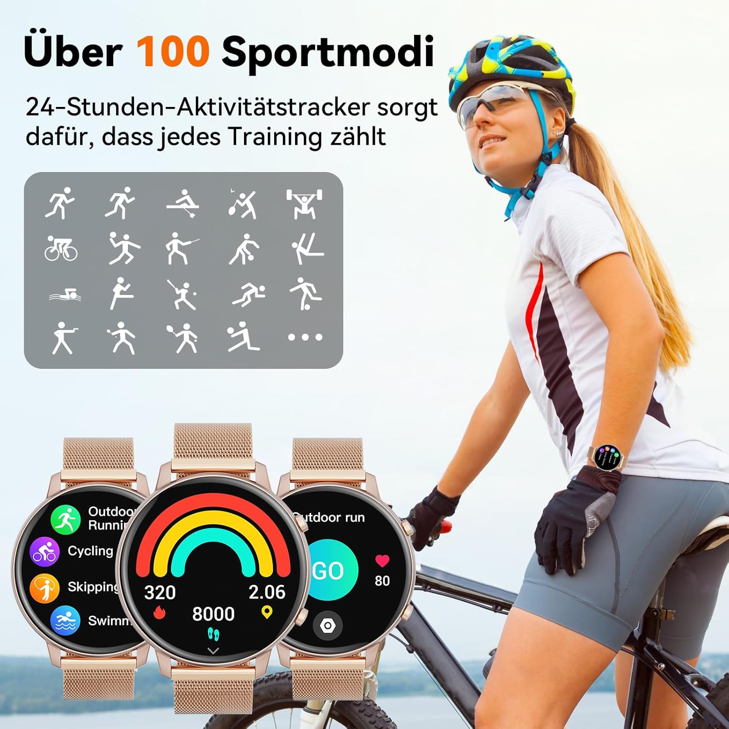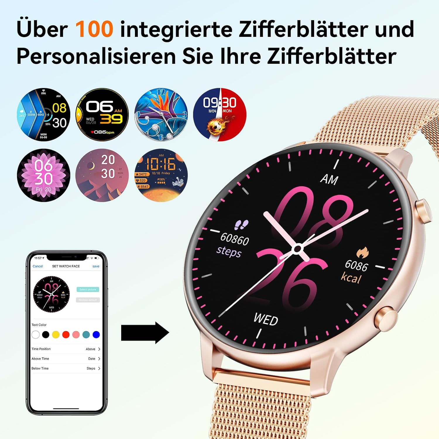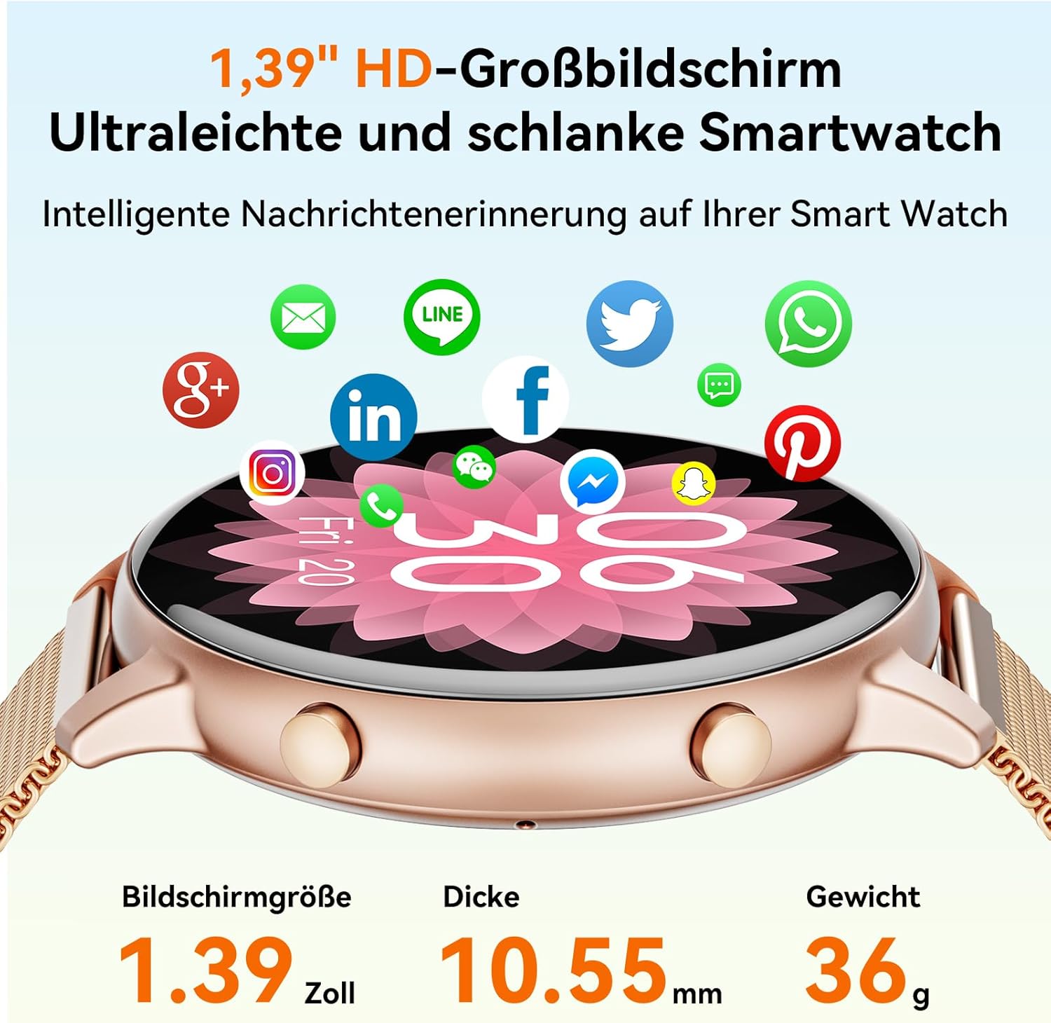Hwagol Smartwatch за жени и мъже 1.39 инчов сензорен екран с Bluetooth разговори, часовник за жени и мъже със 140+ спортни режима, SpO2 монитор за пулс, монитор за сън, крачкомер за iOS и Android